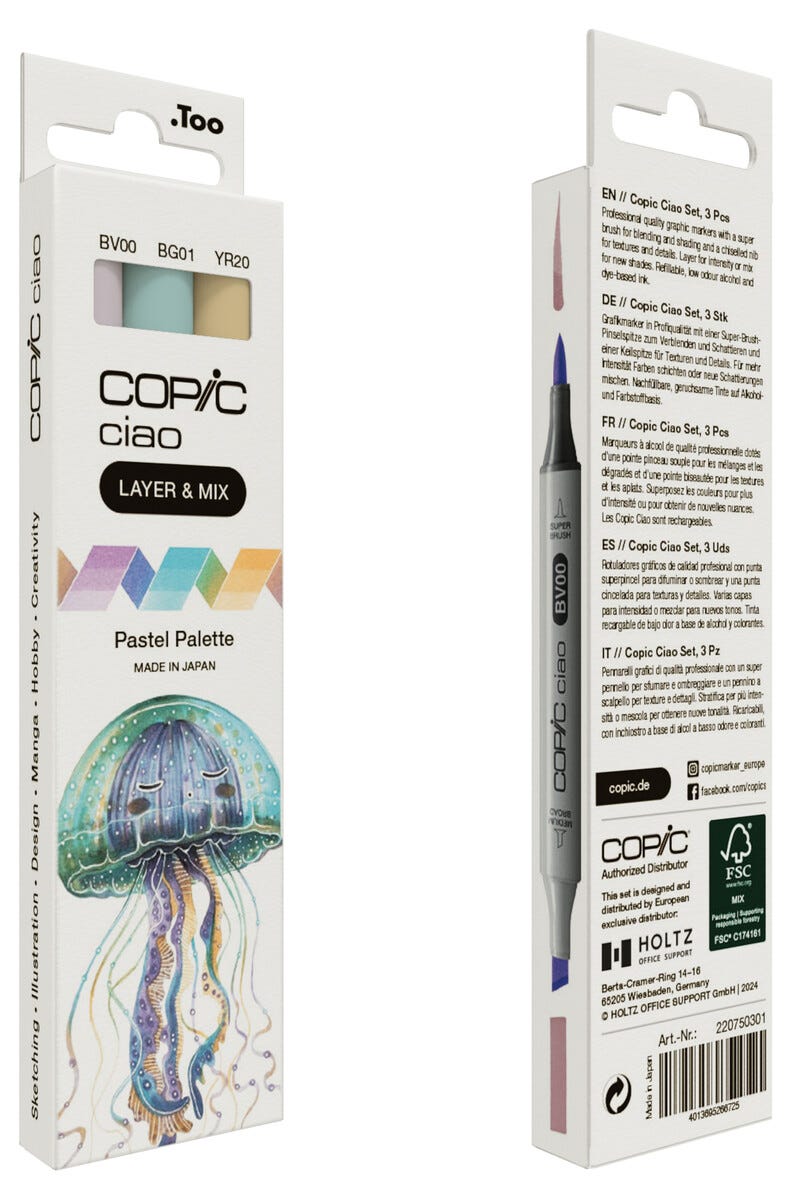 Copic Ciao Layer & Mix, pennor Pastell Palette, 3-pack