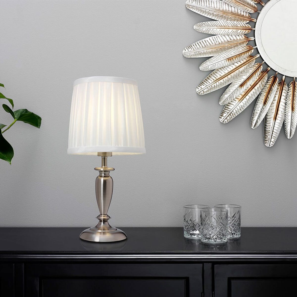 • Bordslampa Ines – mjukt veckad tygskärm med metallfot.