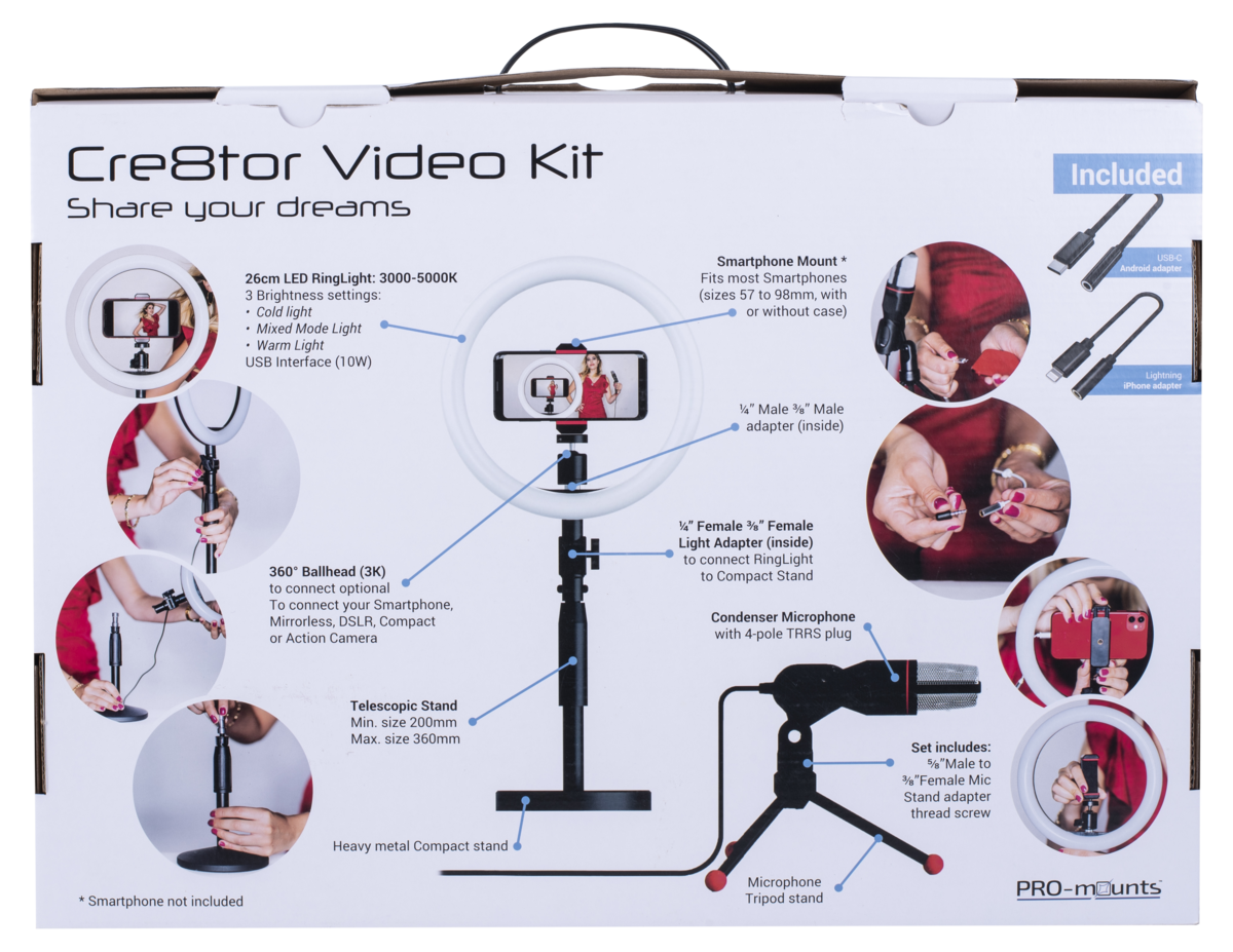Cre8tor Video-kit, studioutrustning för Vlogg