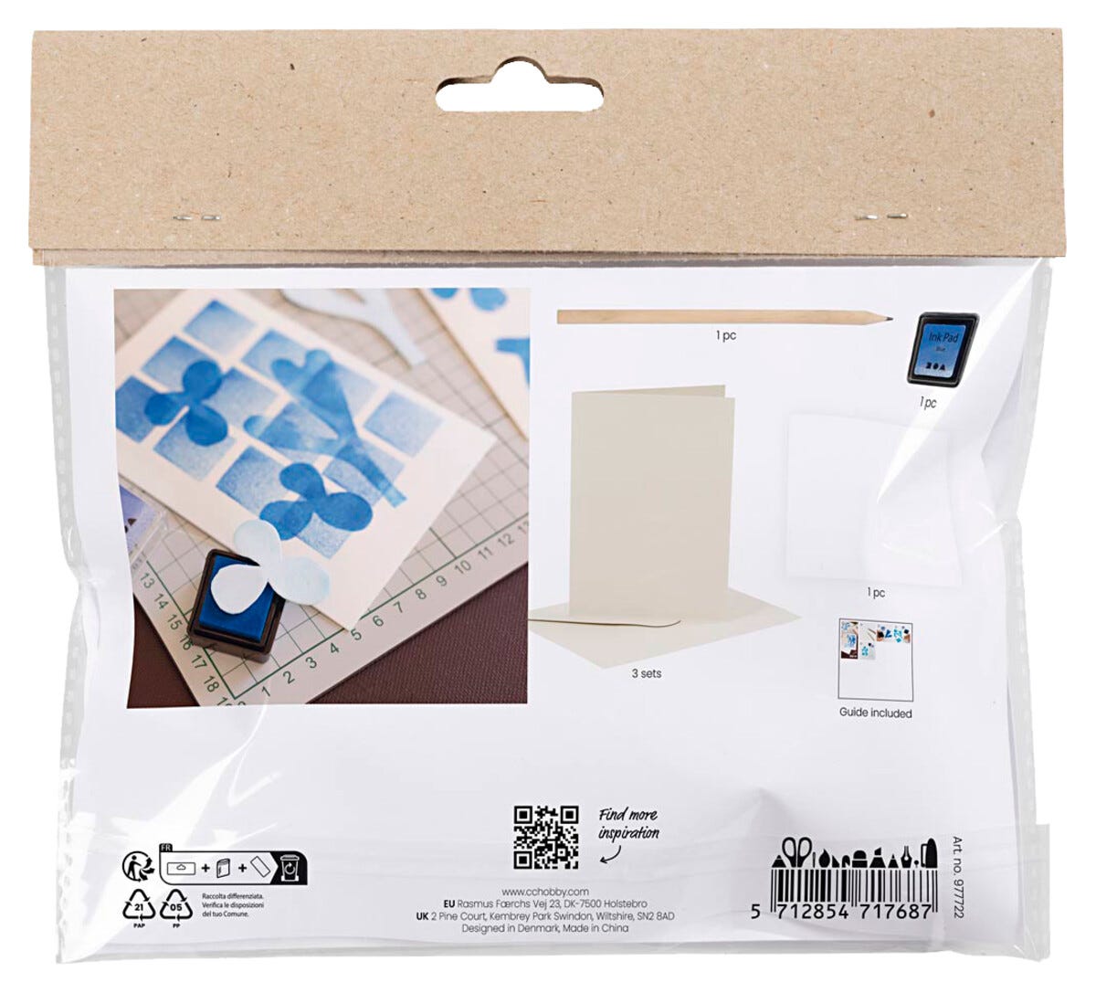 • Innehåll: 3 kort, dekorgummi, stämpelbläck, blyerts.