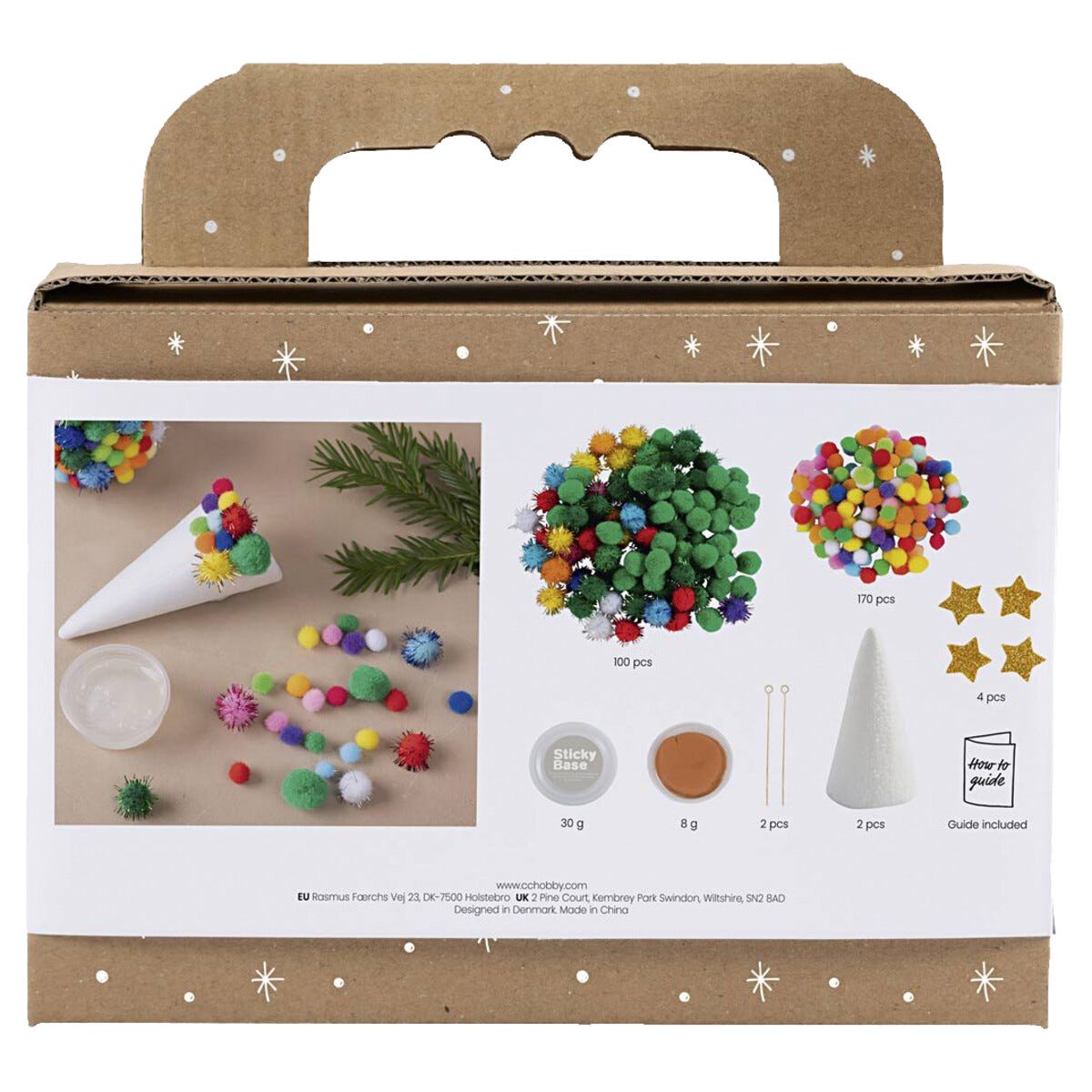 • Creativ Company Mini DIY Kit julpyssel – skapa 2 mjuka julgranar av garntofsar och frigolit.