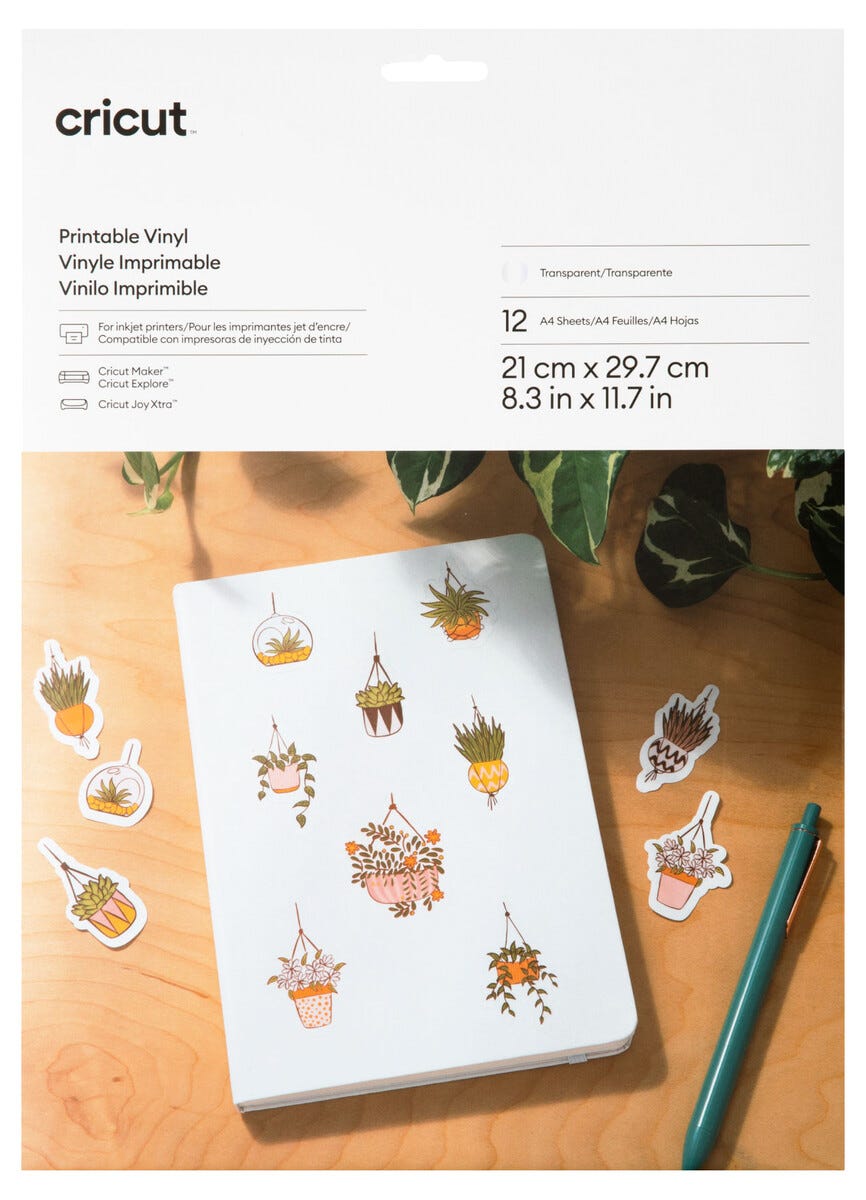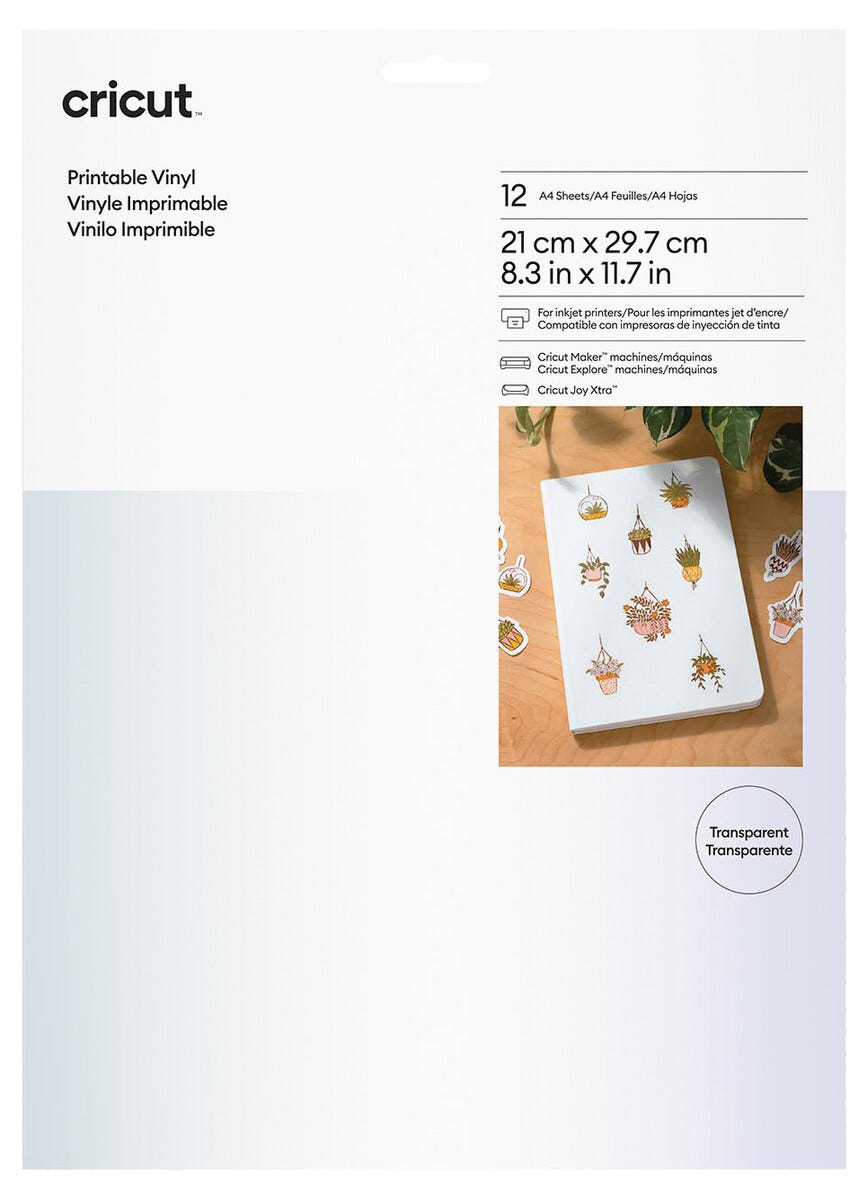 • Cricut Printable Vinyl A4 – fungerar med bläckstråleskrivare och Cricut-skärmaskiner.