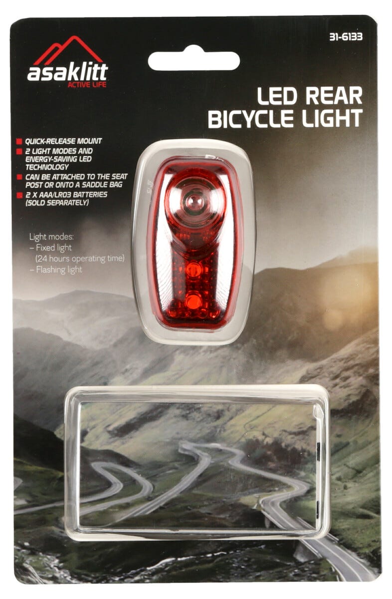 Cykellampa bak LED, Asaklitt