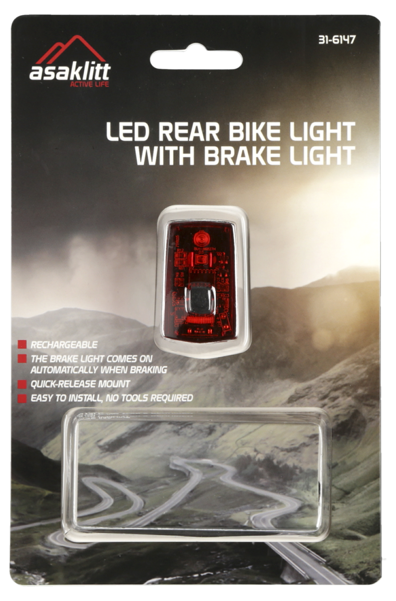 Cykellampa bak med bromsljus LED, Asaklitt
