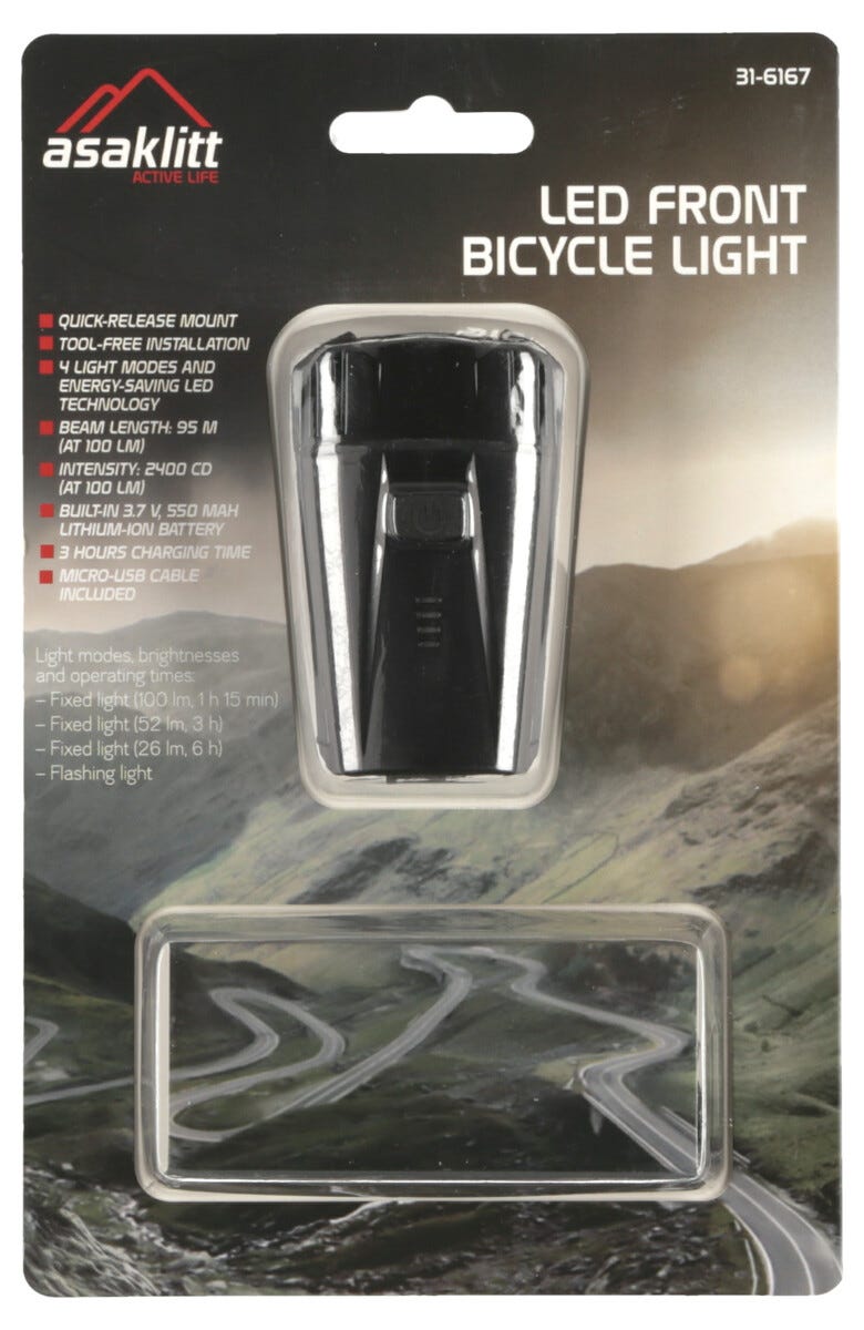 Cykellampa fram LED 100 lm, Asaklitt