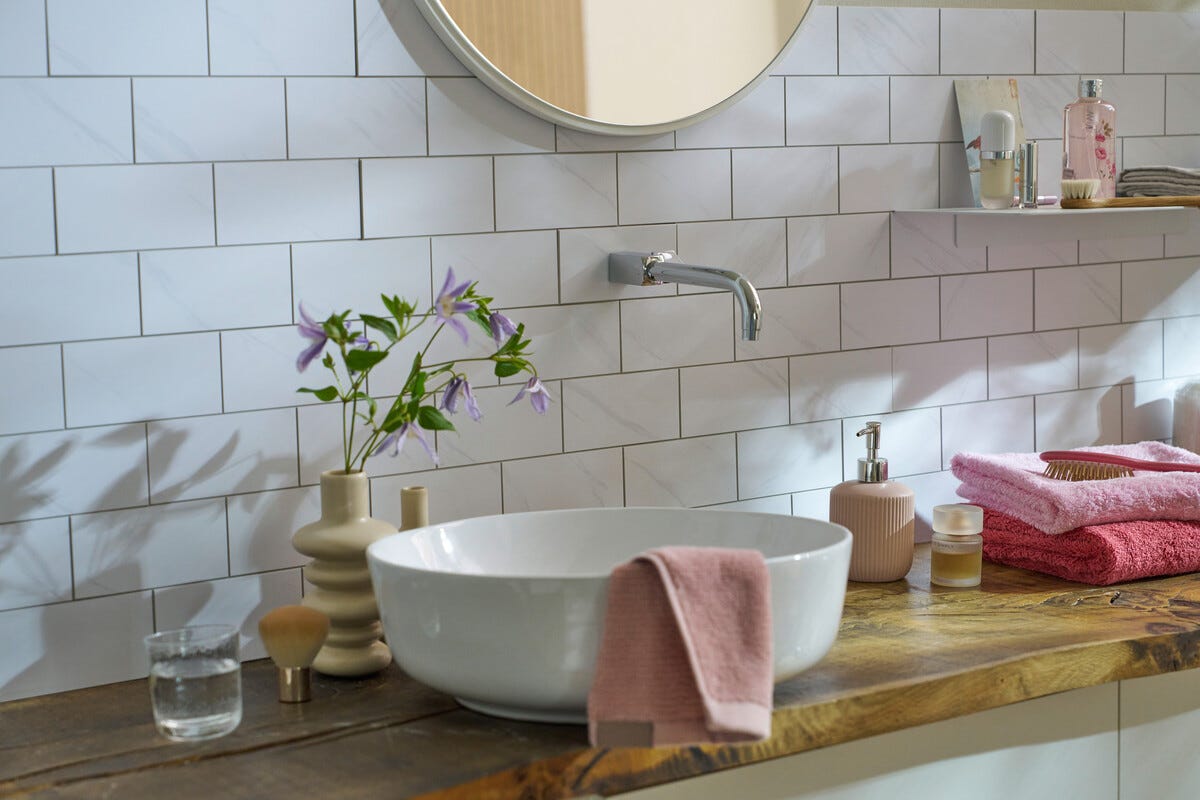 • D-C-Fix Premium självhäftande kakelplattor – kan skäras till önskat mått.