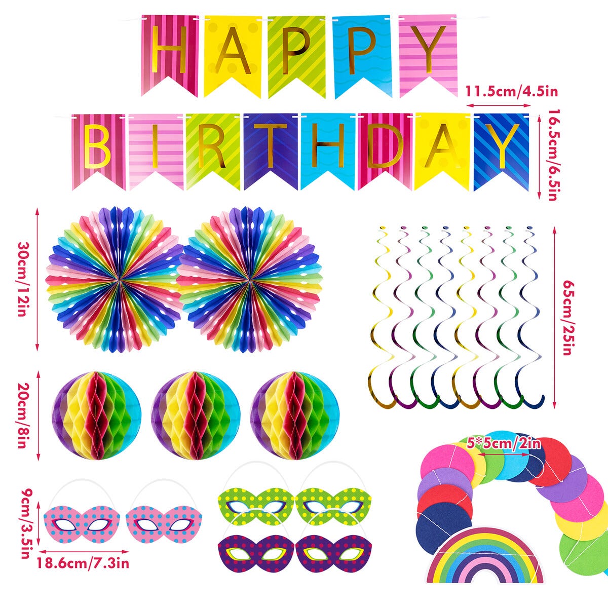• Komplett kit – pynta med partydekorationer i regnbågens alla färger.