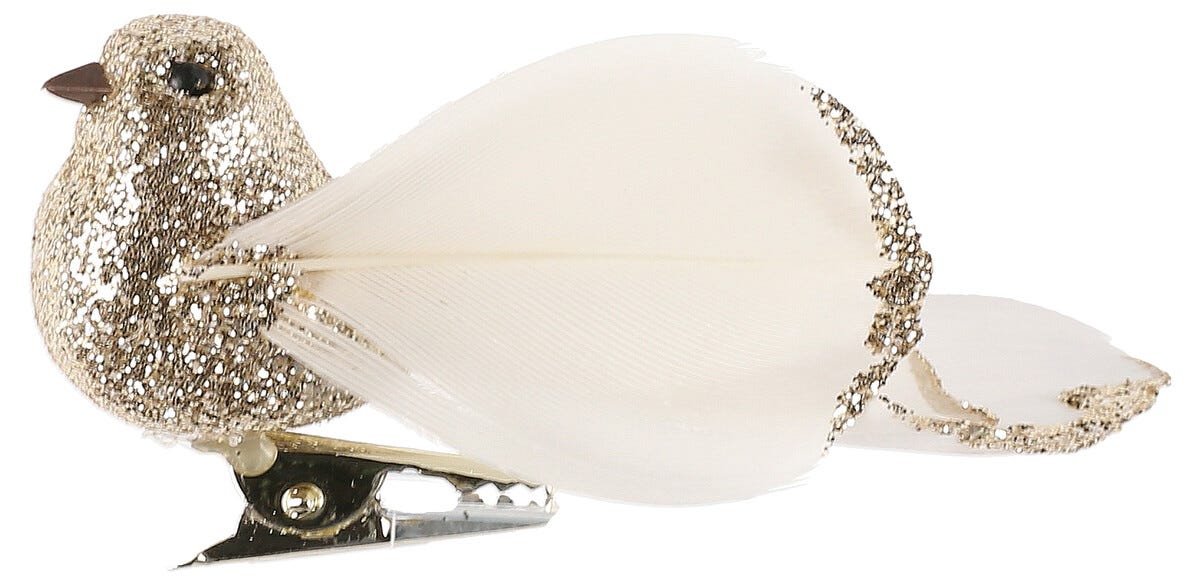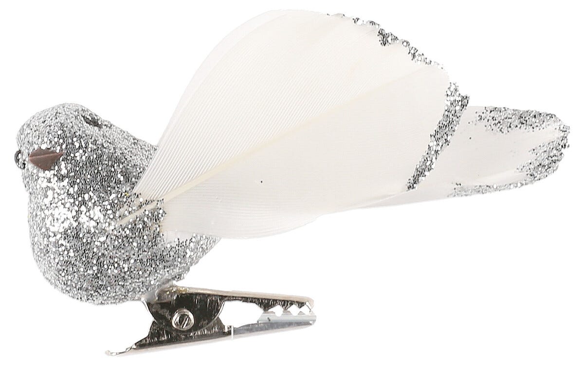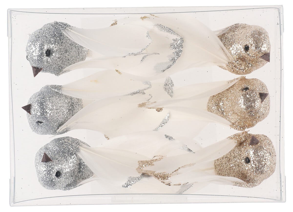 Dekorationsfåglar med clips, silver och guld, 6-pack