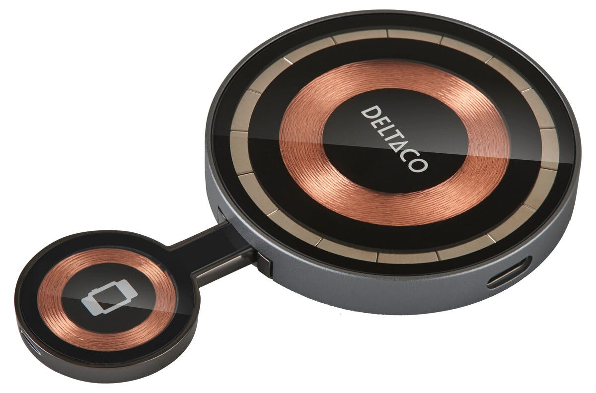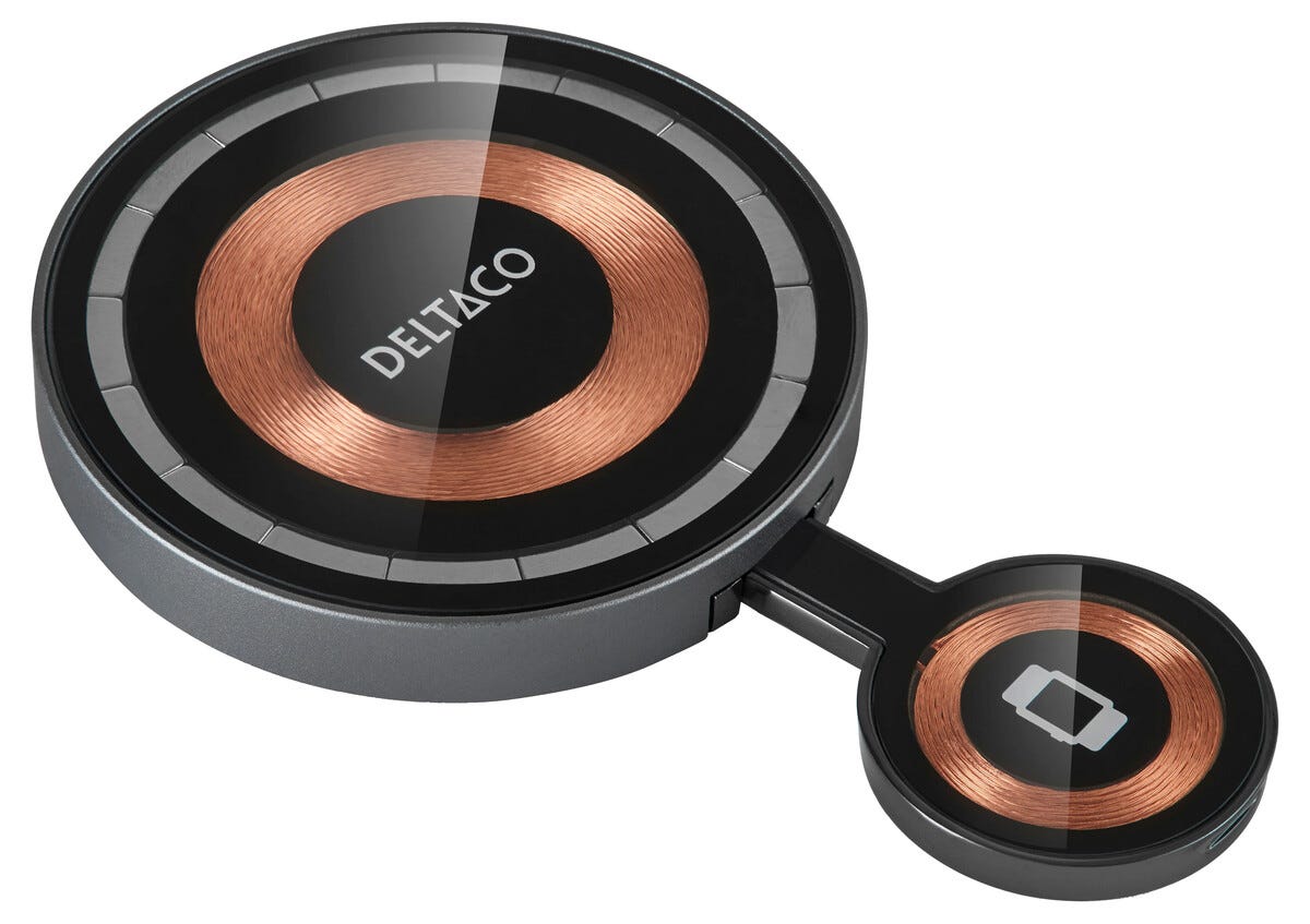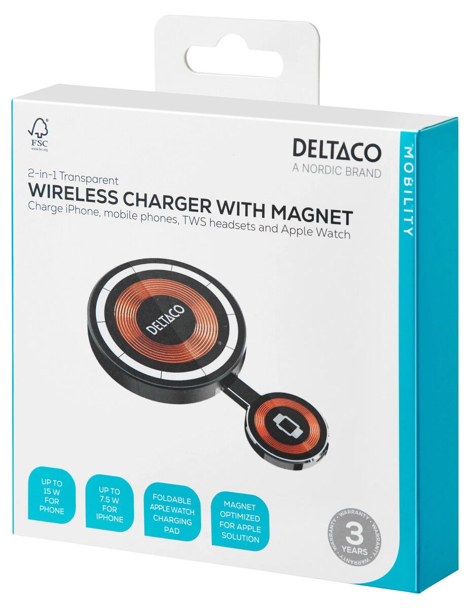 • Deltaco 2-i-1 trådlös laddare med magnet, 15 W.