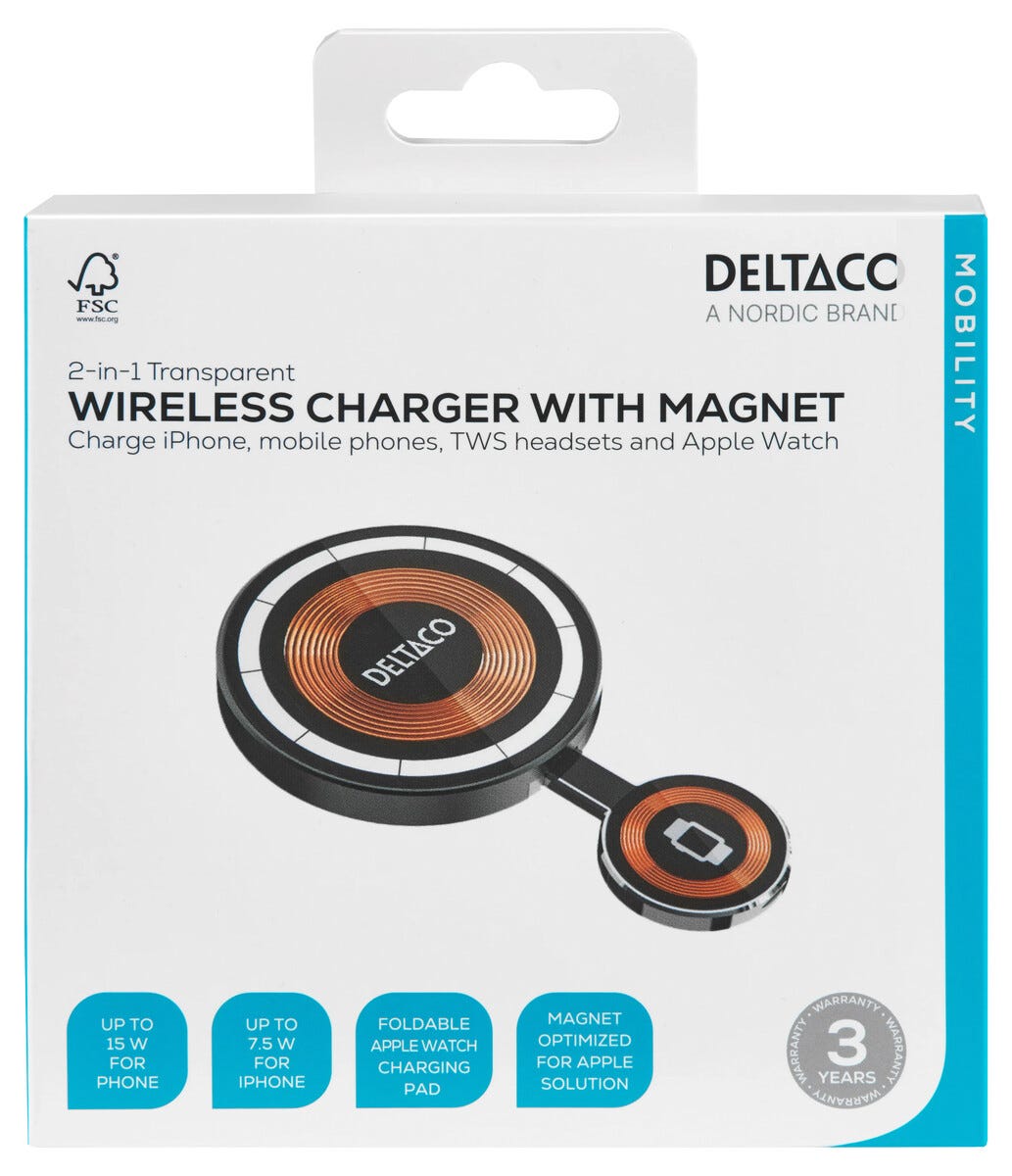 Deltaco 2-i-1 trådlös laddare med magnet, 15W
