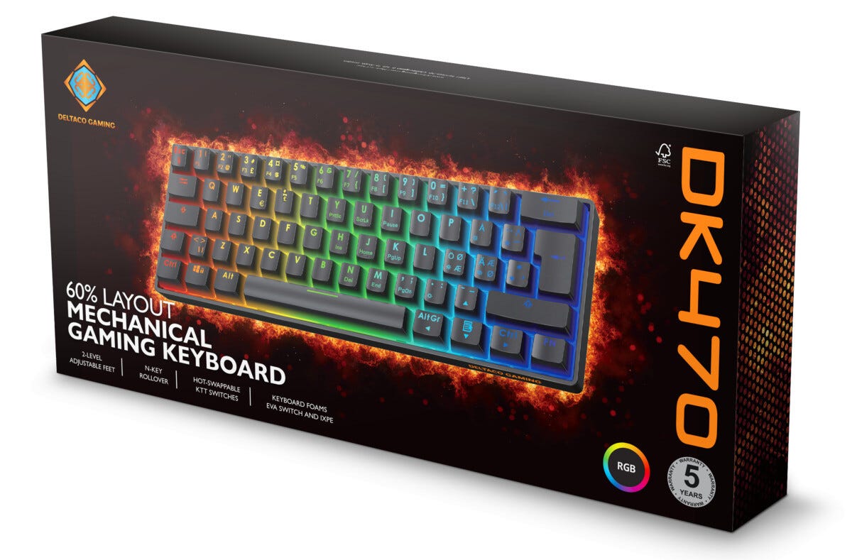 • Deltaco Gaming DK470 tangentbord – försmorda hot-swap KTT-brytare för tystare känsla.