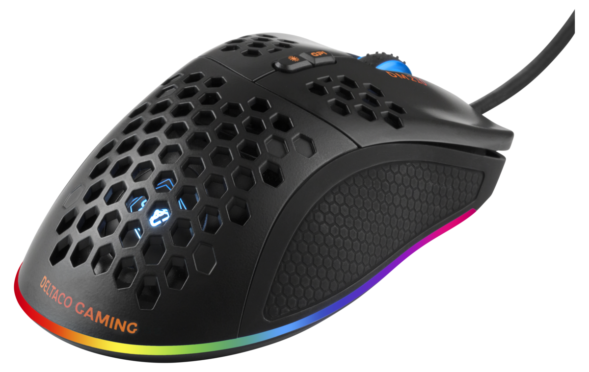 • Deltaco Gaming GAM-108 RGB – ultralätt mus med stilfull belysning.