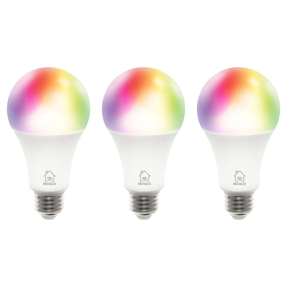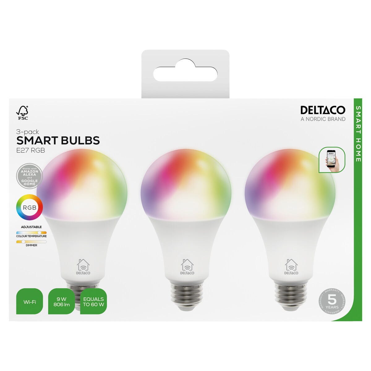 Deltaco Smart Home RGB LED-lampa E27, 9 W, 3-pack