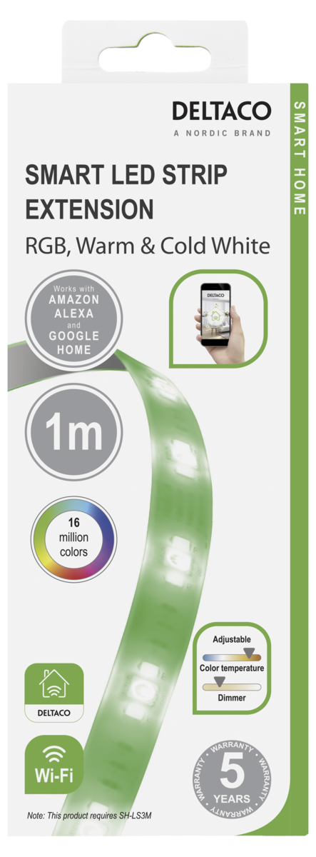 Deltaco Smart Home WiFi LED-list RGB 1 m, för utbyggnad