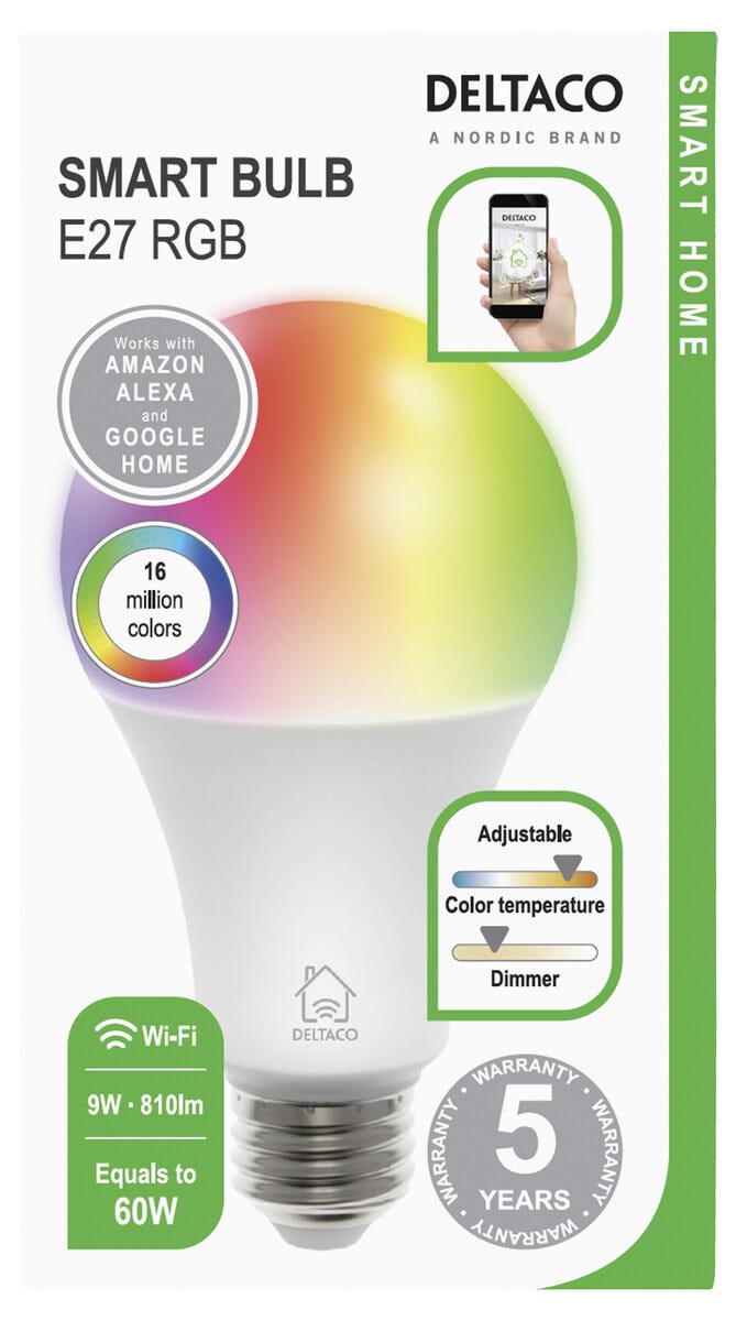 Deltaco Smart Home WiFi dimbar LED RGB E27 9 W