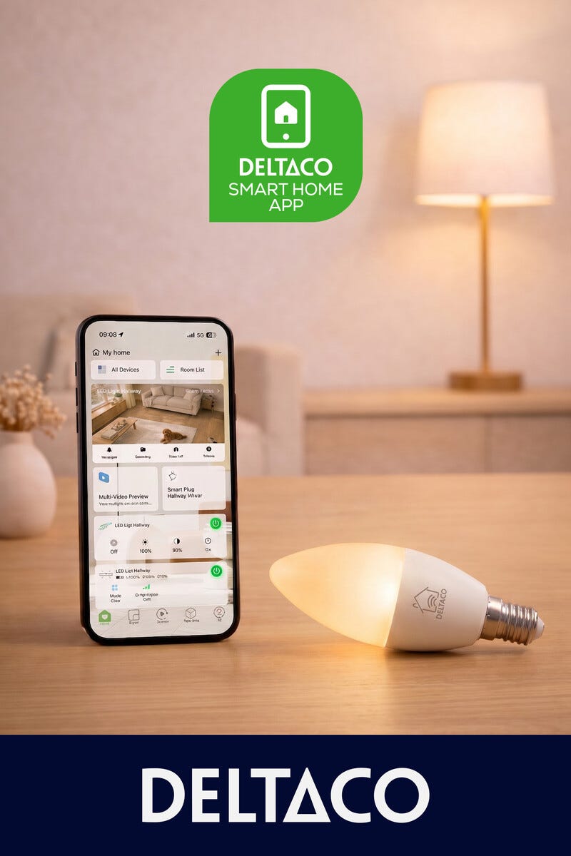 • Deltaco Smart LED-lampa E14 4,5 W – motsvarar 40 W vanlig glödlampa.