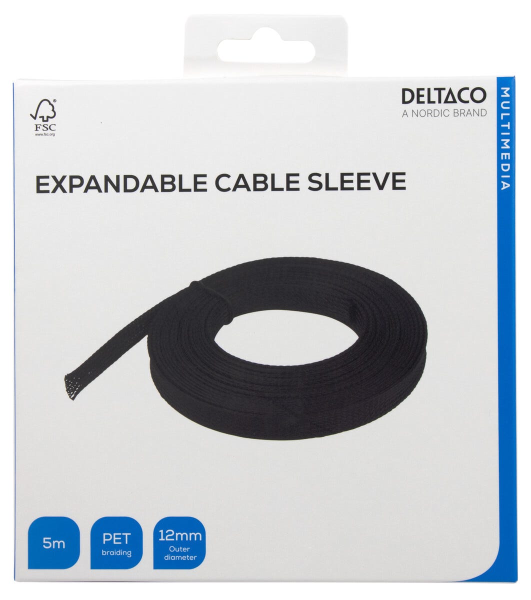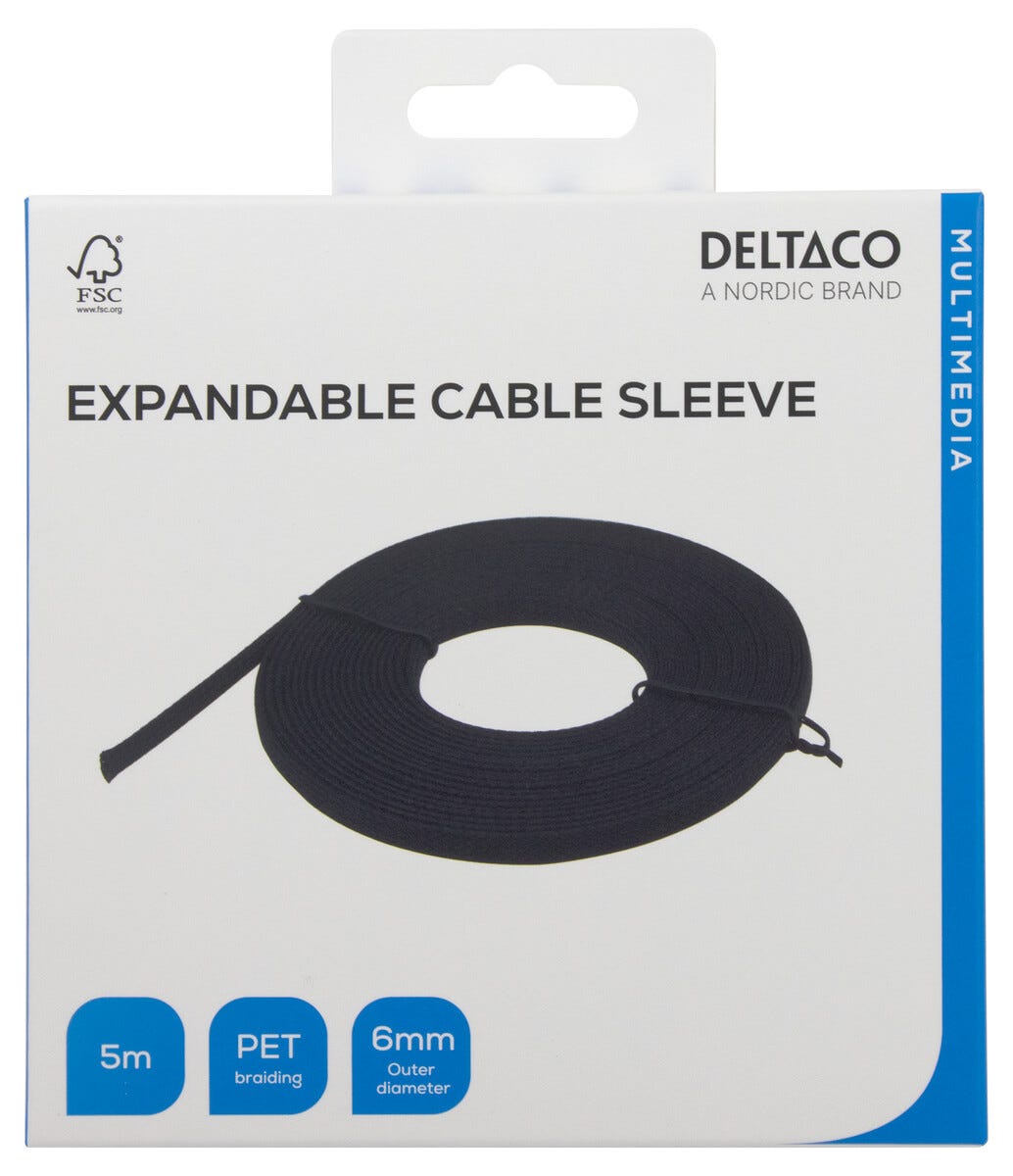 Deltaco kabelstrumpa flätad, svart, 5 m