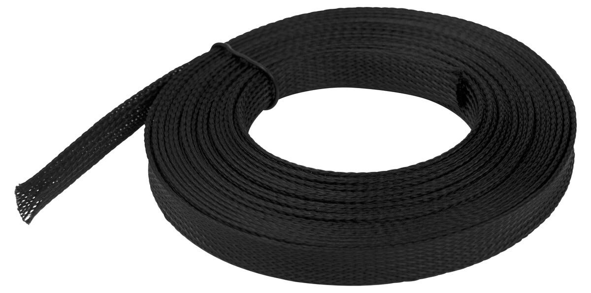 • Deltaco kabelstrumpa – flätad kabelsamlare av svart nylon.