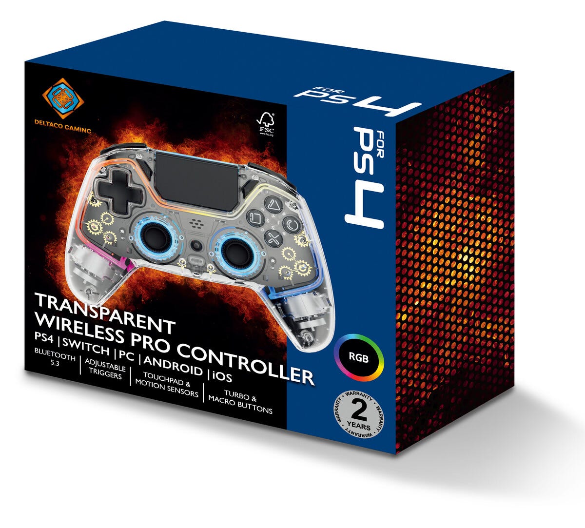 Deltaco kontroll för PS4 och PC, transparent RGB