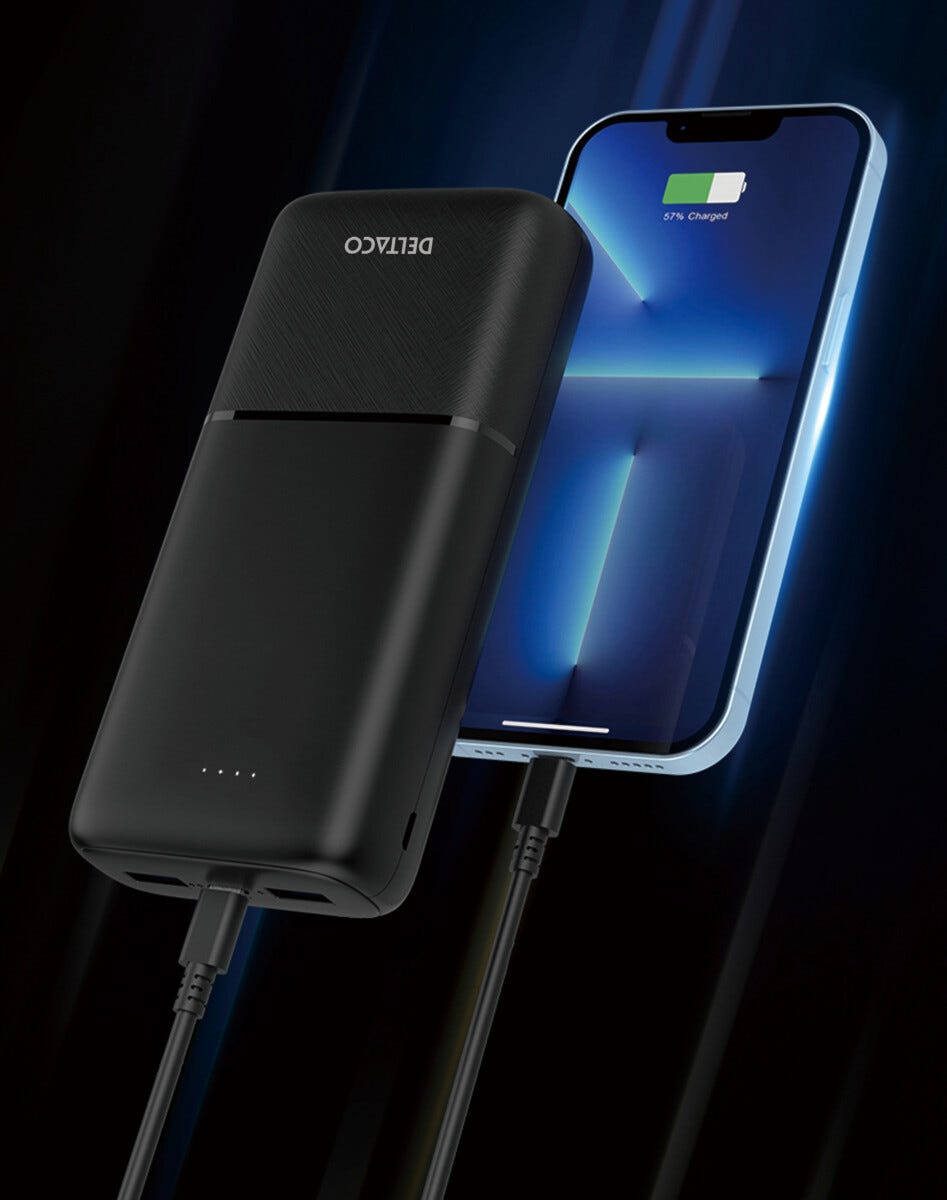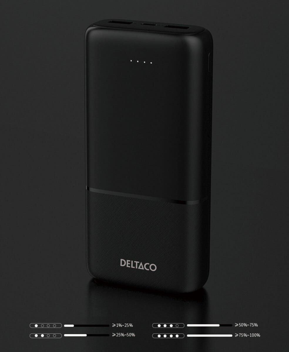 Deltaco powerbank 10 000 mAh PD 20 W, 1 USB-C, 2 USB-A