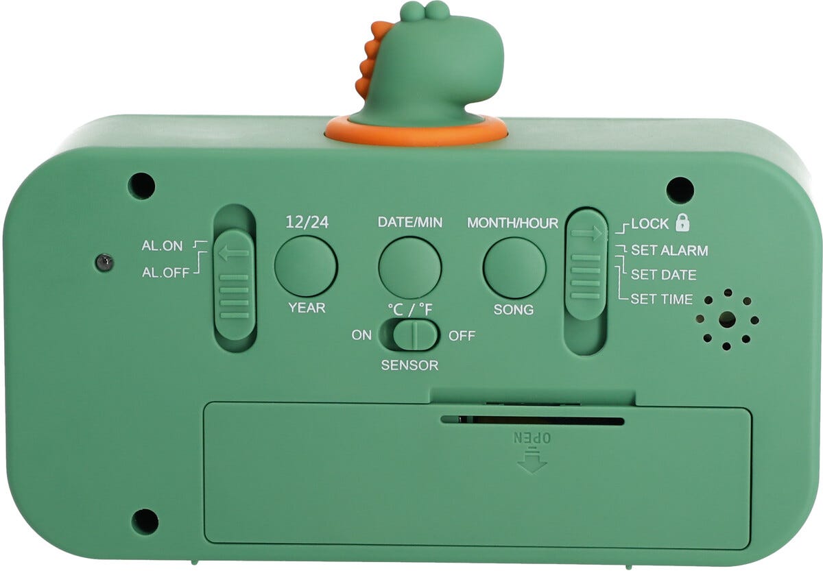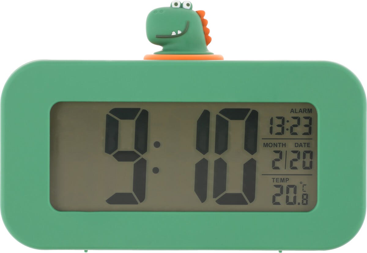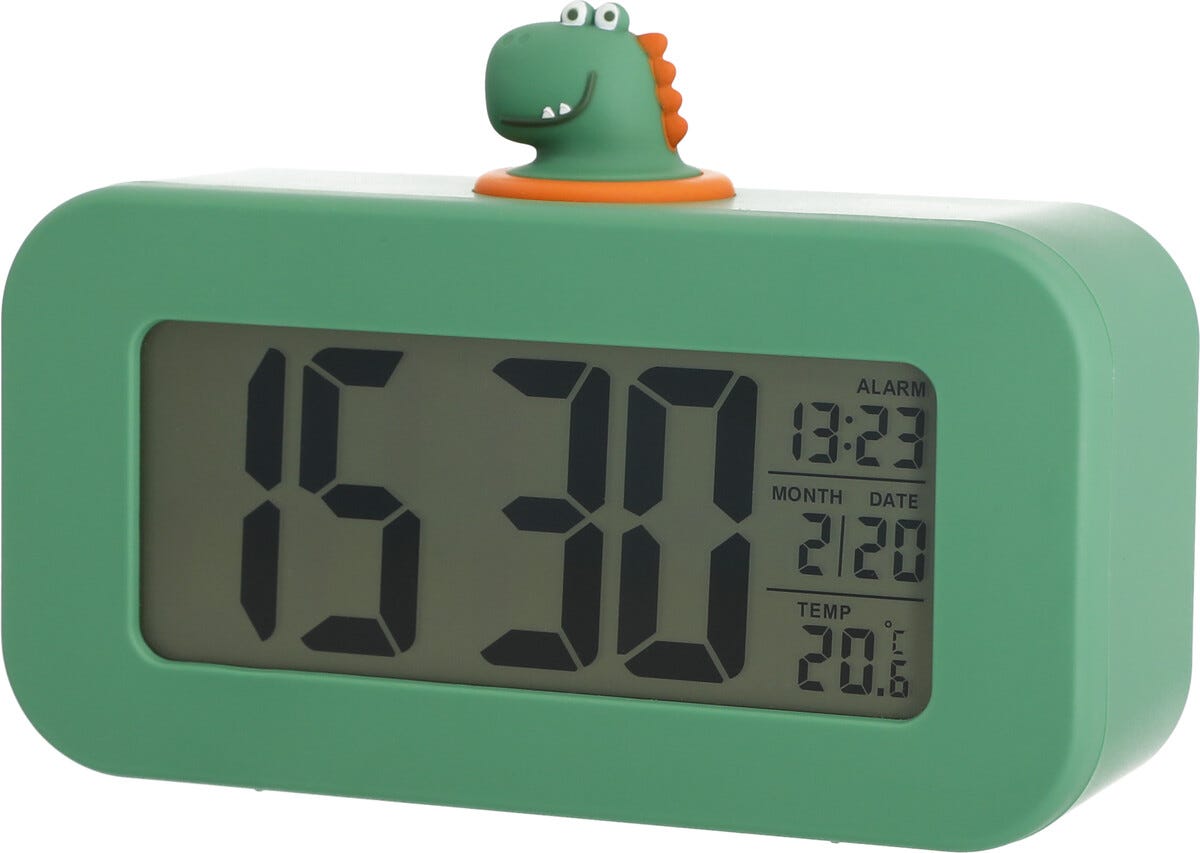 Digital väckarklocka för barn, dinosaurie, grön