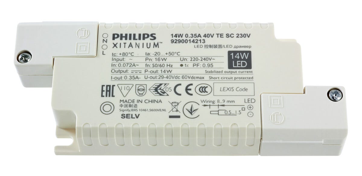 Ut: 29−40 V DC / 350 mA, max 14 W.