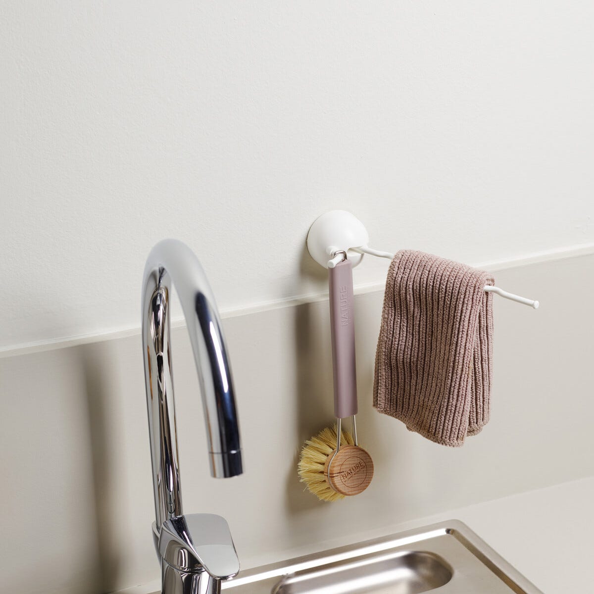 • Självhäftande disktrasehållare – fäst kroken på kakel, glas eller metall.