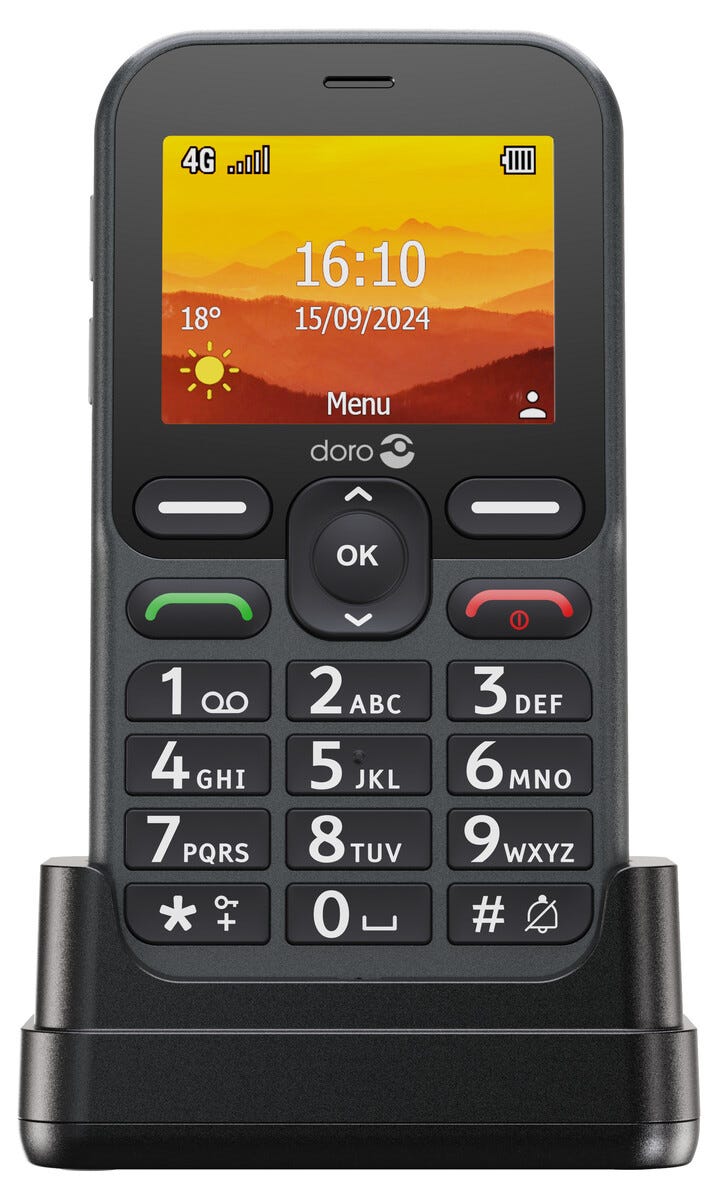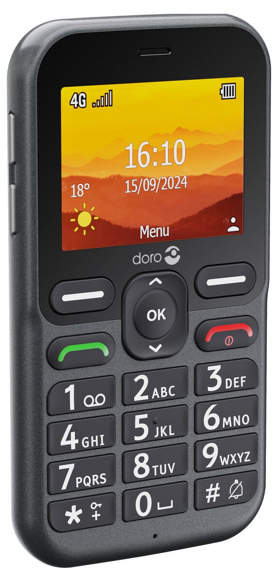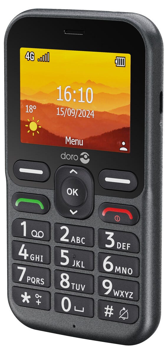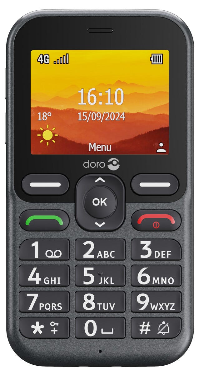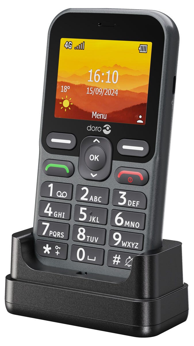 • Doro Leva L11, grafit/vit – seniortelefon med stora knappar.