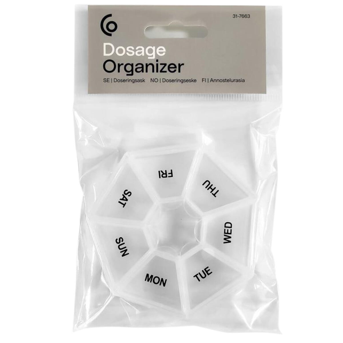 • Doseringsask vecka – med plats för medicin för 7 dagar.