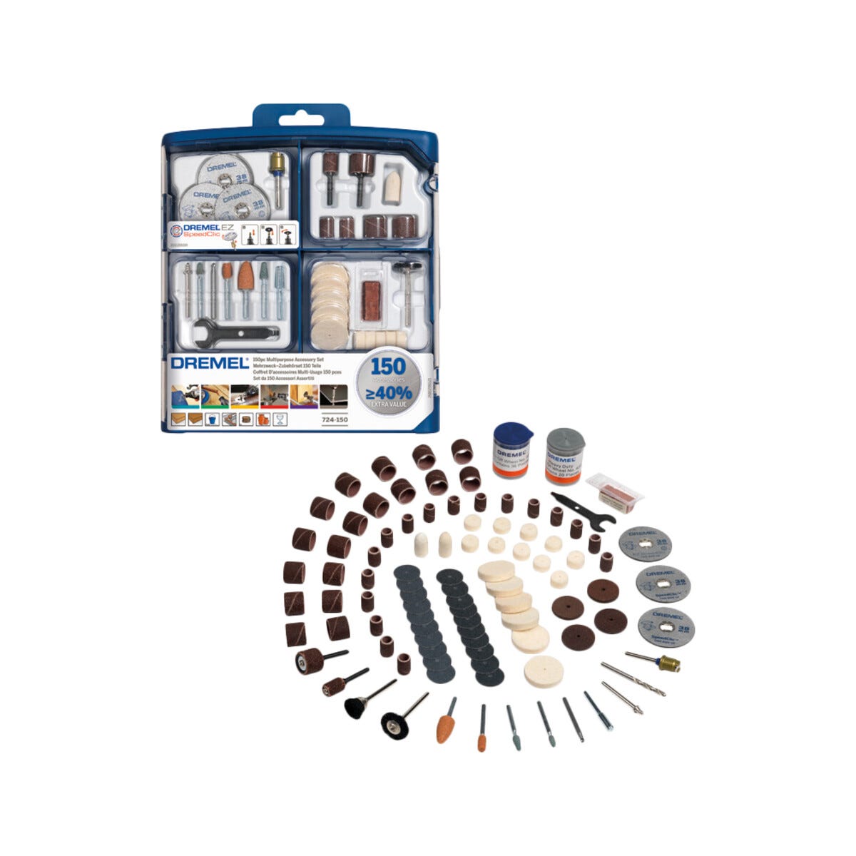 • Dremel 724 – startssats med 150 originaltillbehör i hög kvalitet.