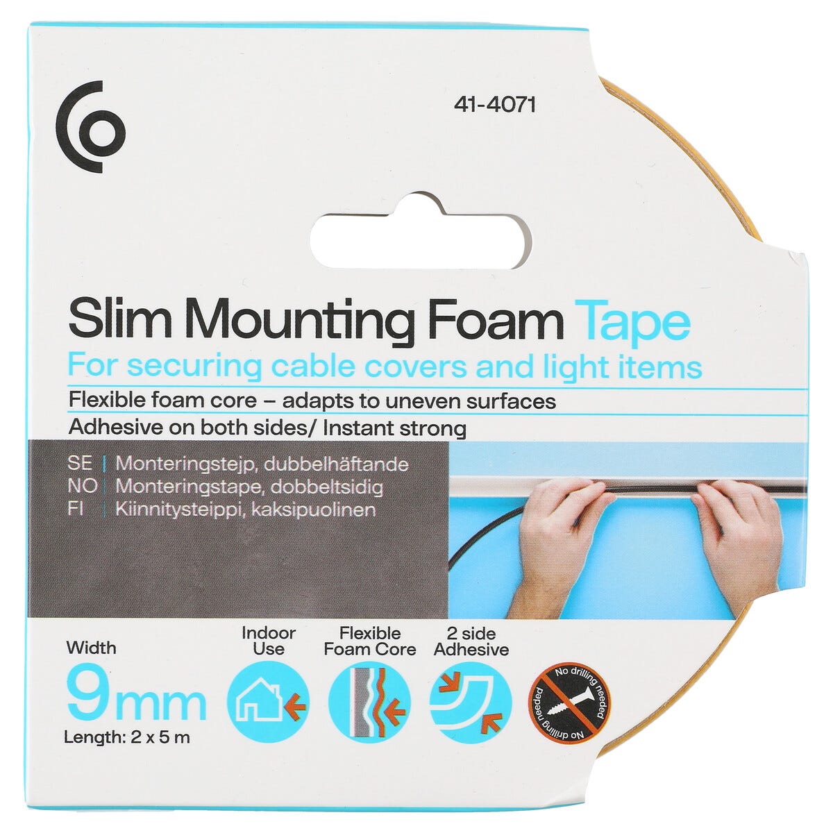 • Bredd: 9 mm. Längd: 2 x 5 meter – räcker till flera kabelkanaler och lister.
