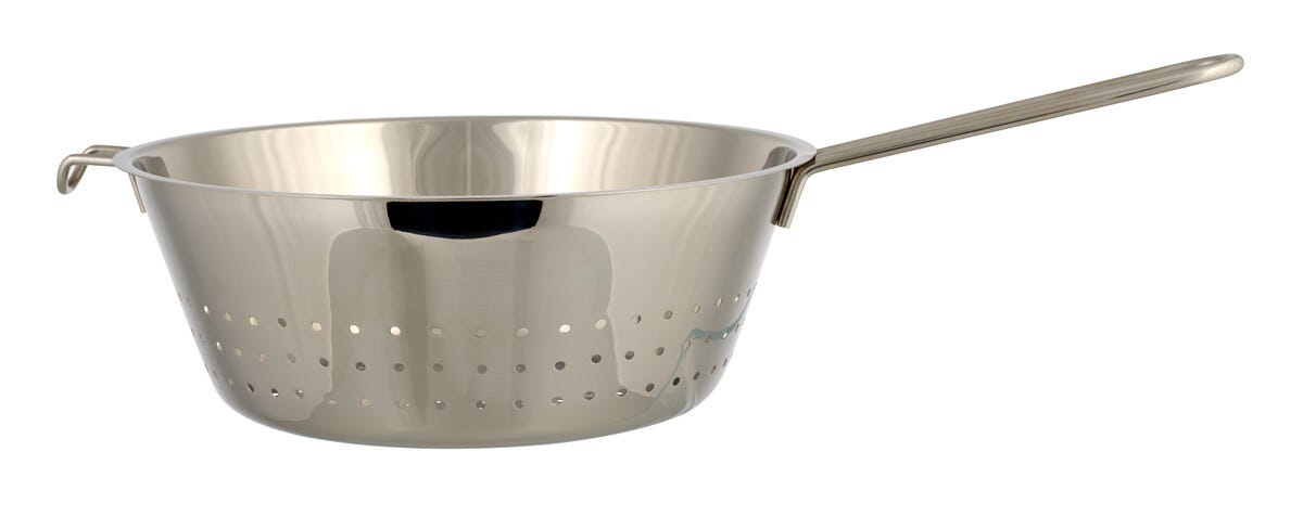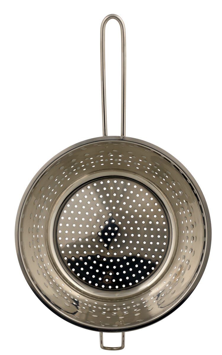 • Plan botten och långt handtag - passar över vasken och i grytor och kastruller.
