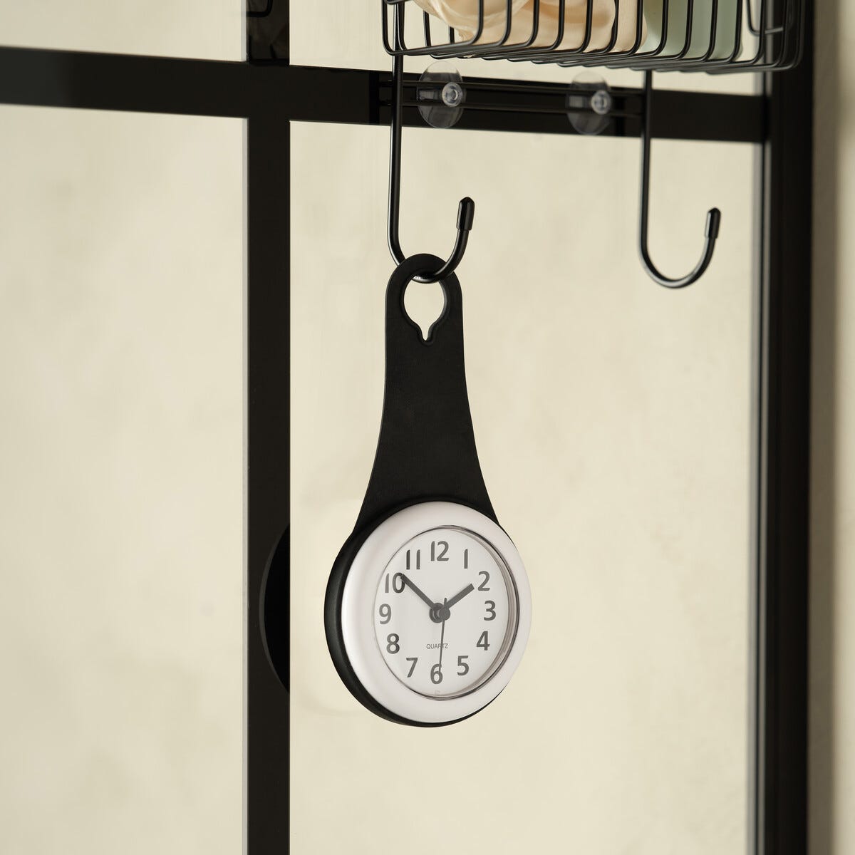 • Analog duschklocka med sugpropp och ögla för enkel upphängning.