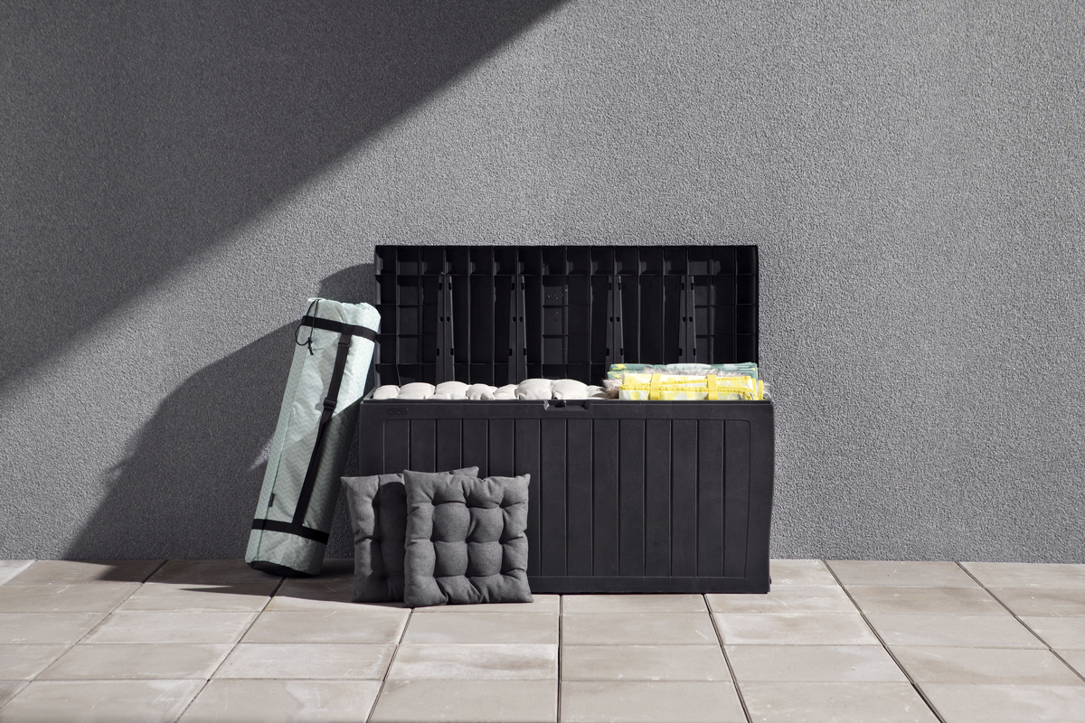 • Rejäl och rymlig förvaringsbox för uteplatsen eller trädgården.