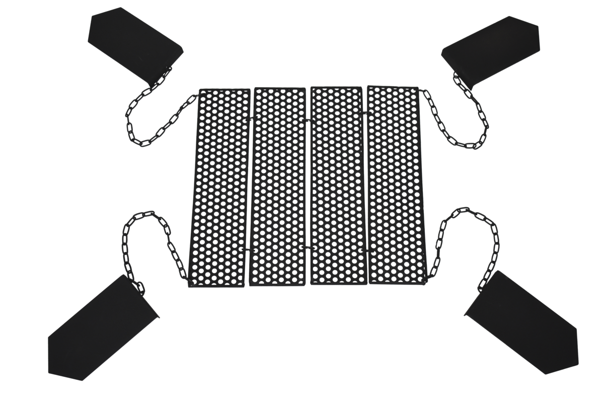 • Kedjor med mothållsplåtar förankrar gallret i snön.
