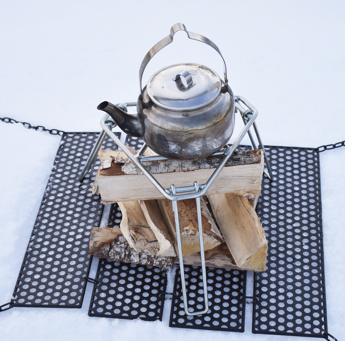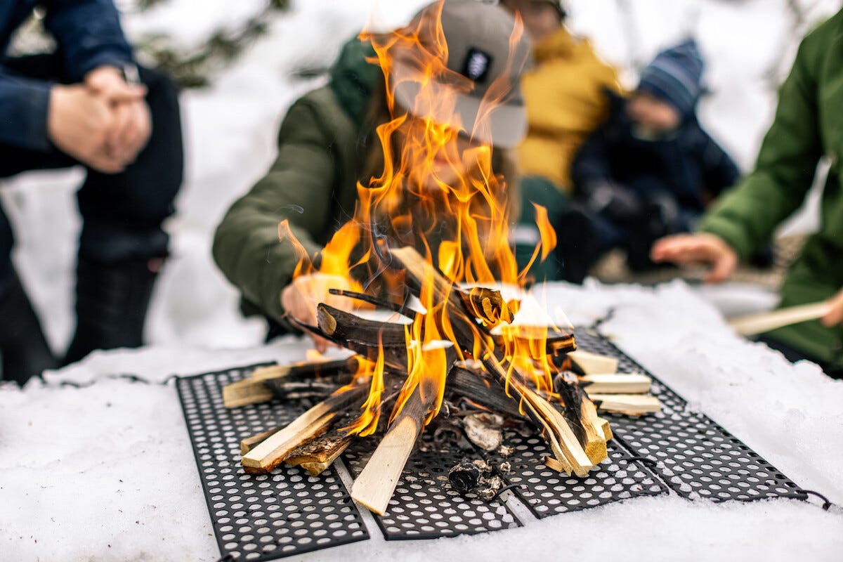 • Elda direkt på snön – gallret förhindrar att brasan sjunker ner.