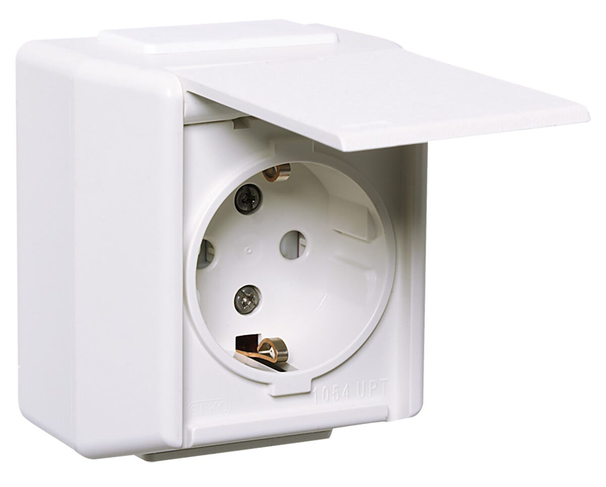 Elko RS 1-vägs utanpåliggande vägguttag jordat, Nordic Renvit