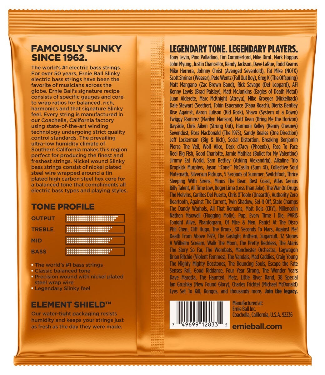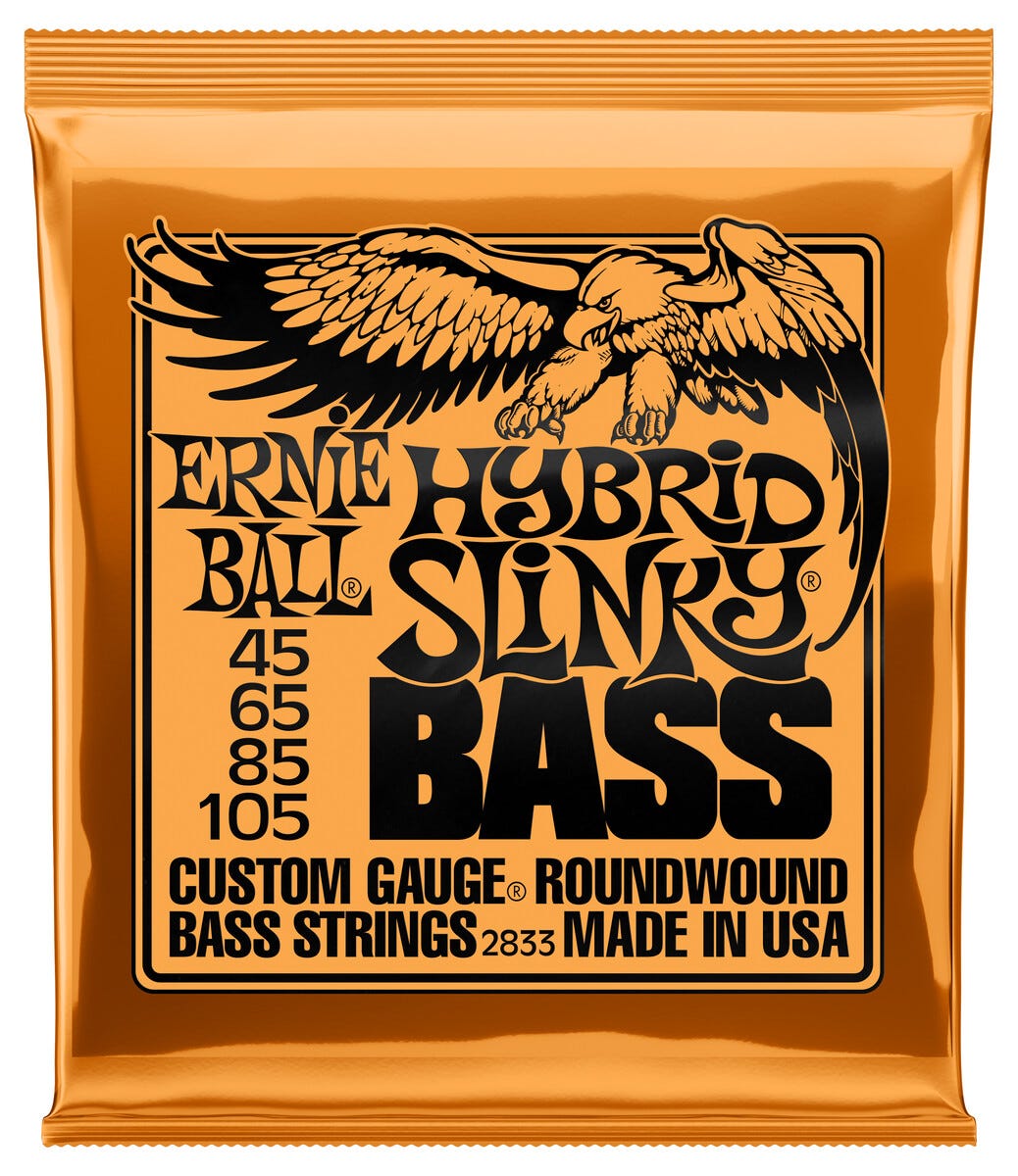 • Ernie Ball Super Hybrid Slinky Bass – populärt strängset till elbas.