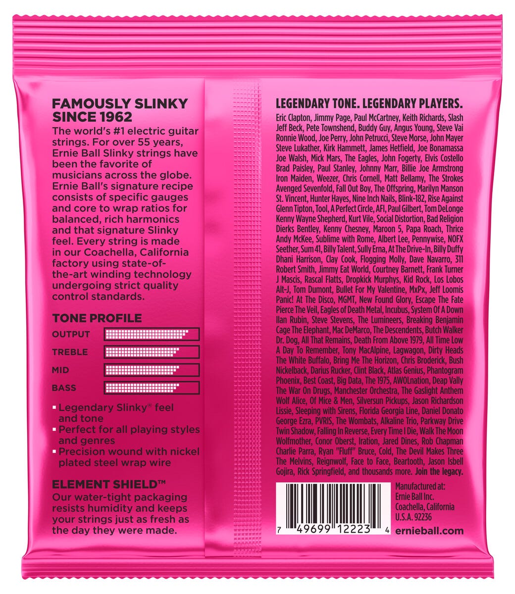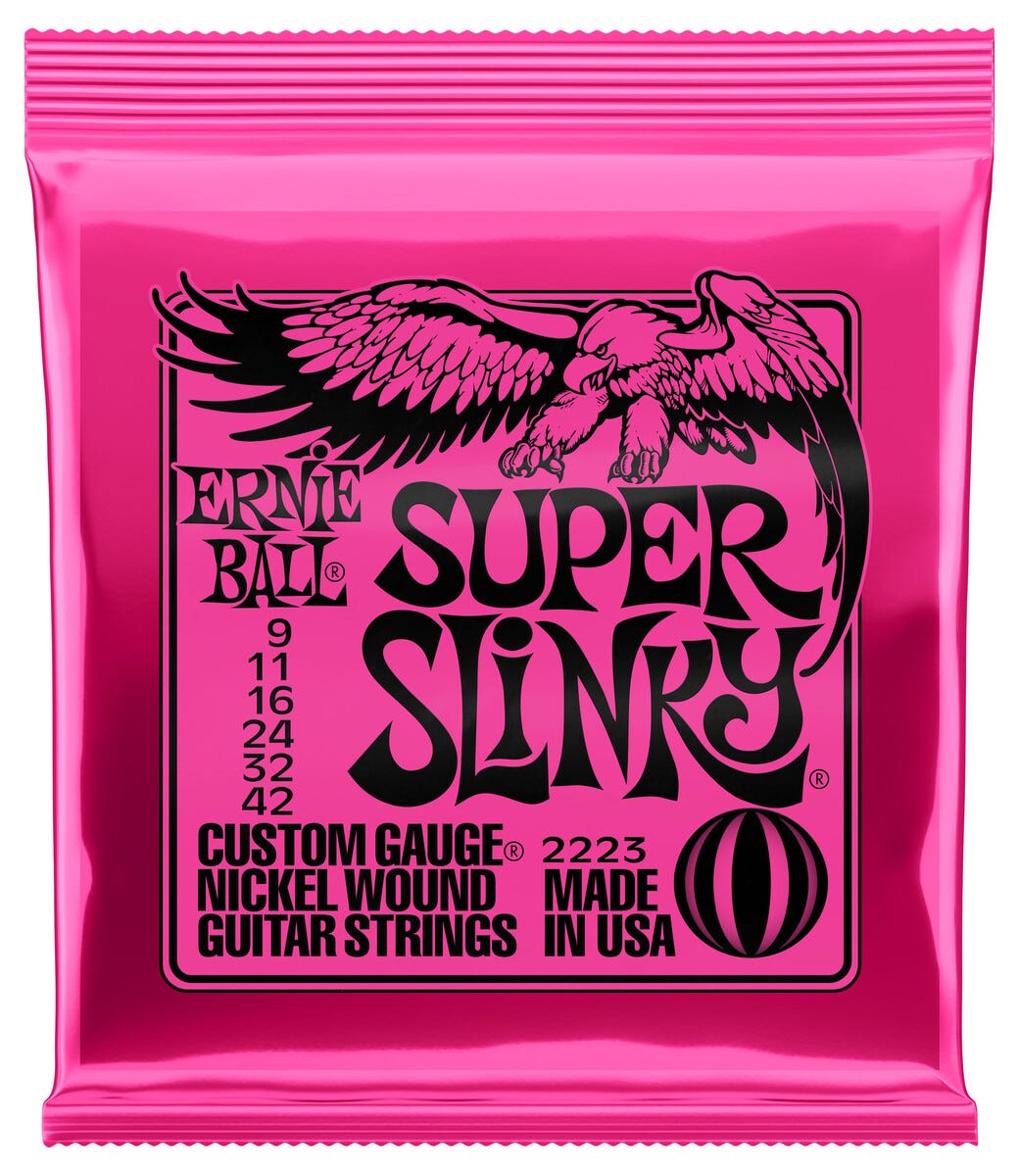 • Ernie Ball Super Slinky – populärt strängset till elgitarr.