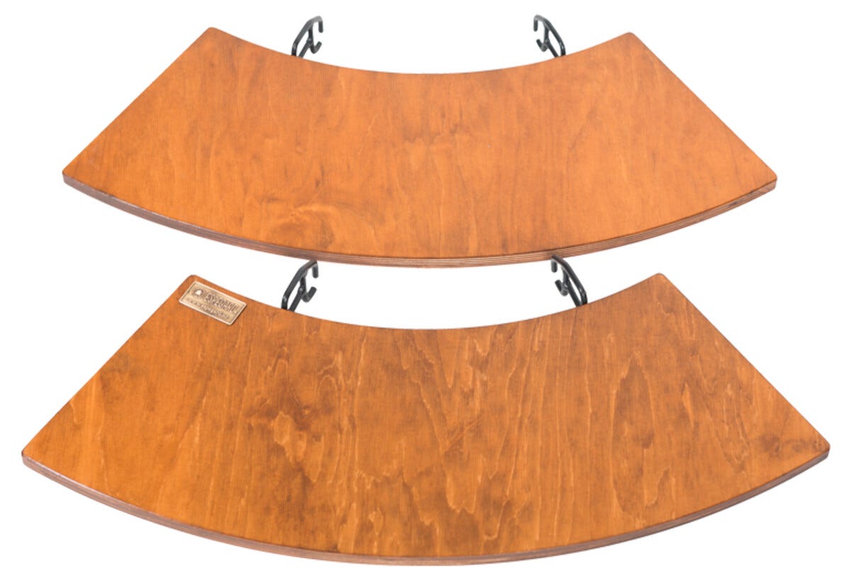 • Bord av brunbetsad och lackerad träfanér med tåliga stålkrokar.