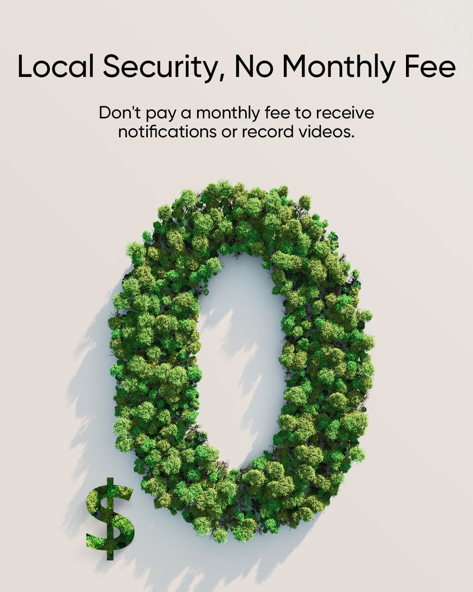 • Lokal lagring på microSD (upp till 128 GB) – ingen månadsavgift.
