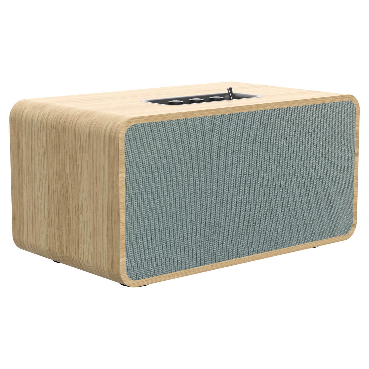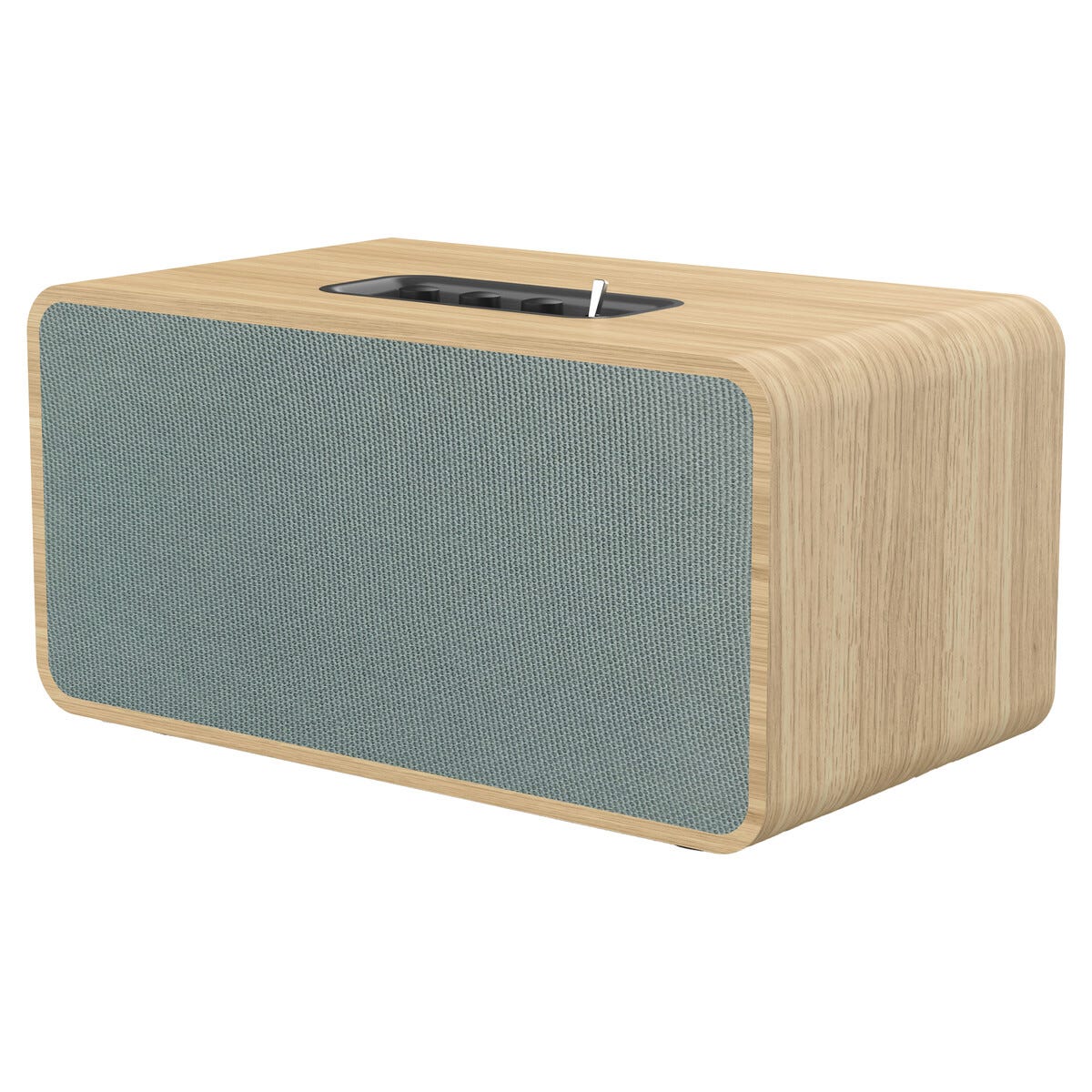 • Liten högtalare med stort ljud – inbyggd förstärkare och snygg trädesign.
