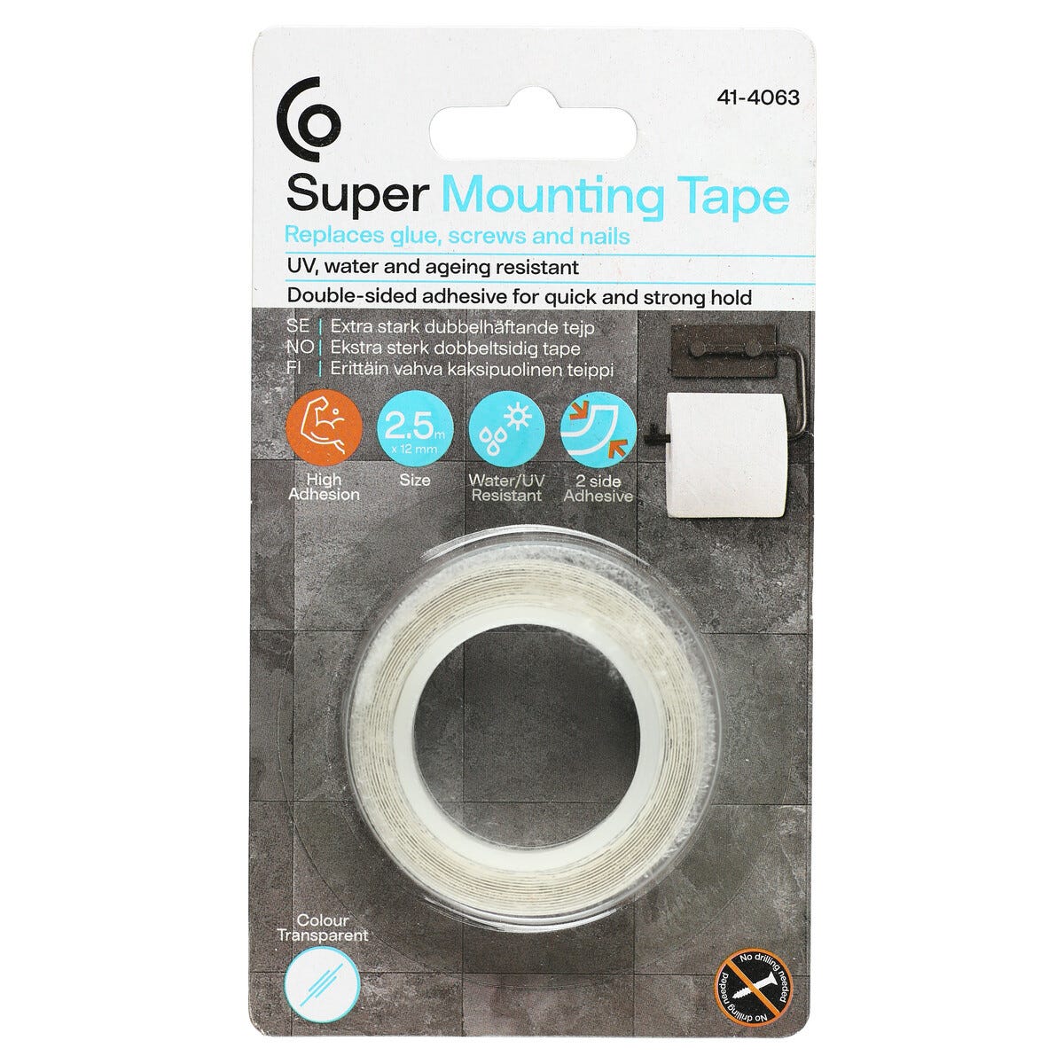 • Extra stark dubbelhäftande tejp med nästintill osynlig vidhäftning.