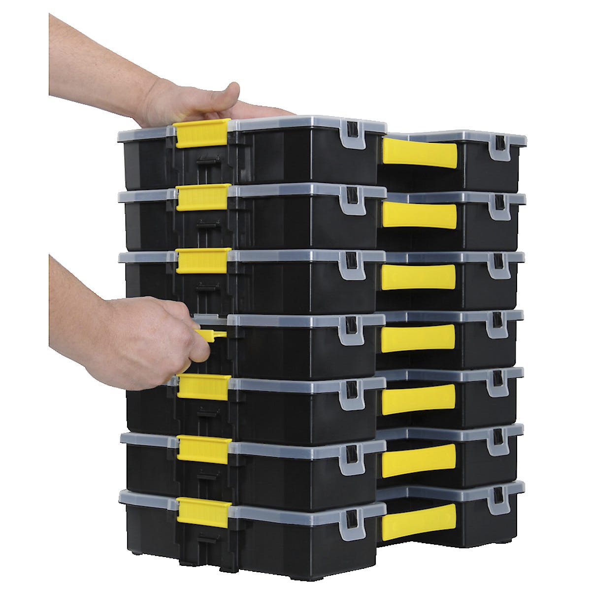 • Låsspärrar som gör att man kan bygga ihop/bära 3 lådor åt gången.
