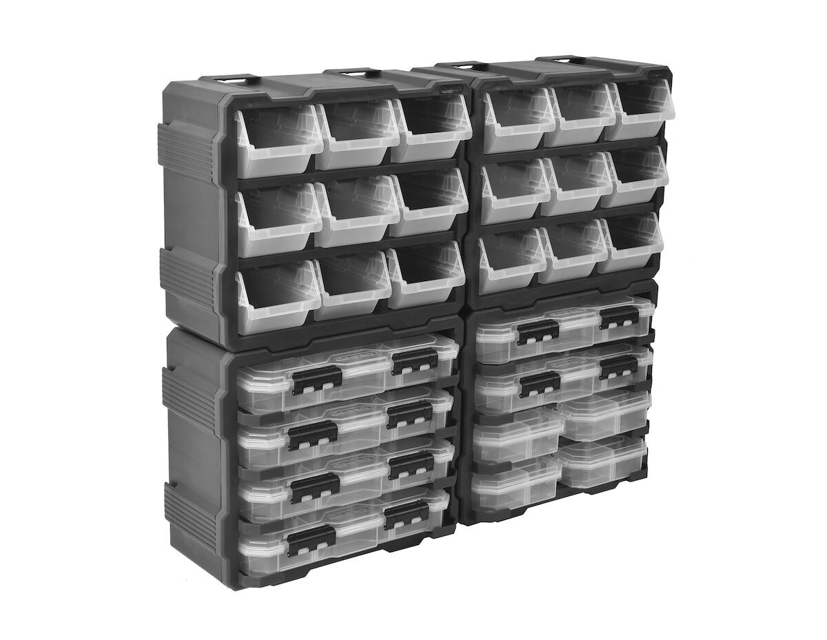 • Överskådlig förvaring av skruv, spik och smådelar.
