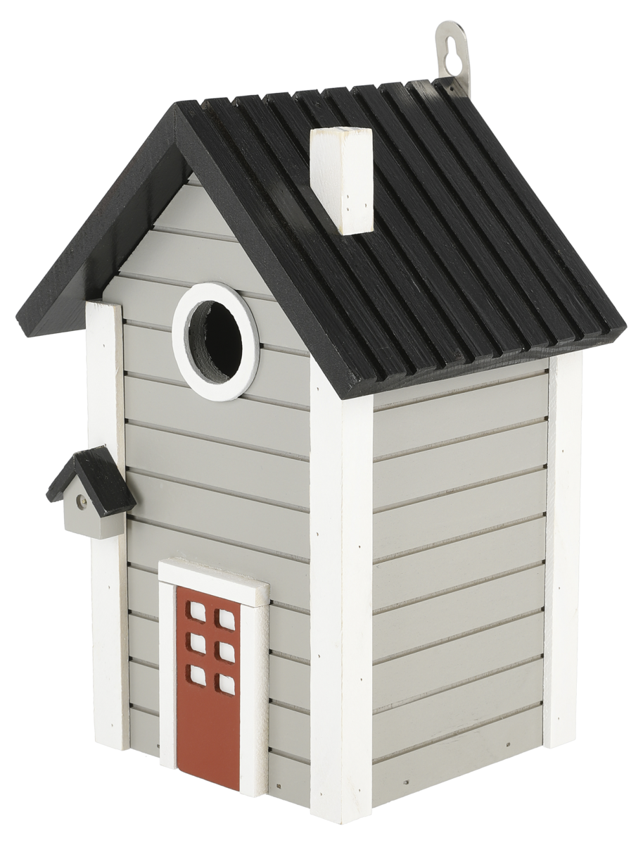 • Dekorativ fågelholk med svart sadeltak och 26 mm ingångshål.