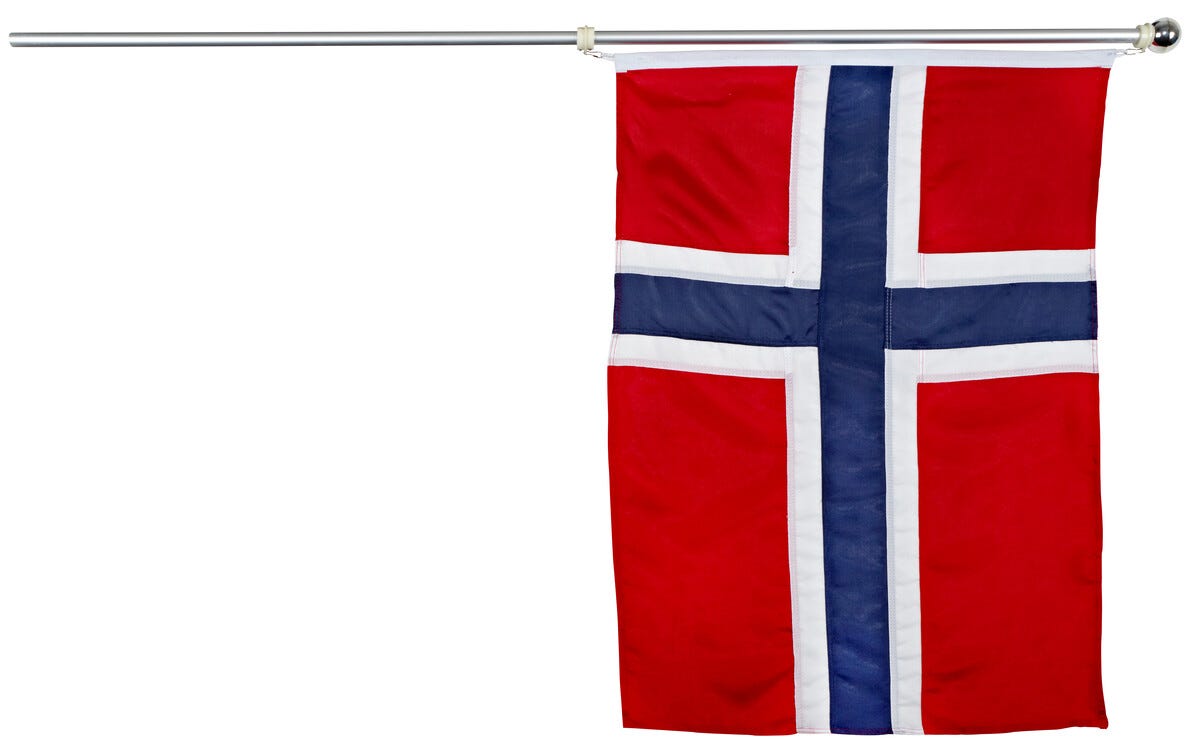 • Komplett fasadset med metallstång, flaggsträckare, toppkula, väggfäste och flagga.