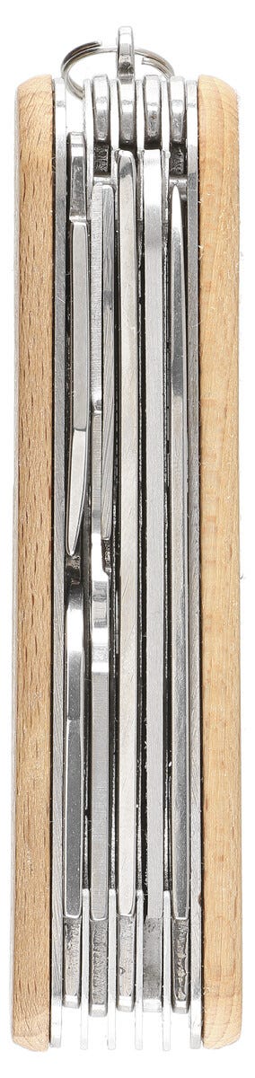• 15 verktyg av rostfritt stål och grepp av FSC®-märkt trä.