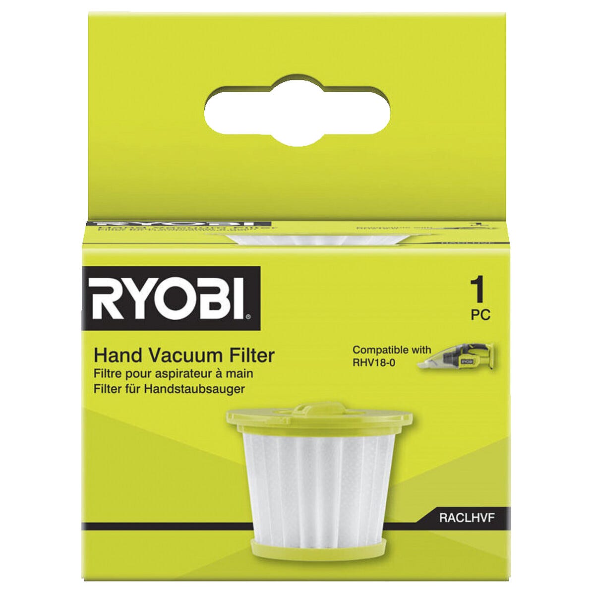 • Ryobi RACLHVF filter – ersätter slitna filter för maximal rengöringskapacitet.