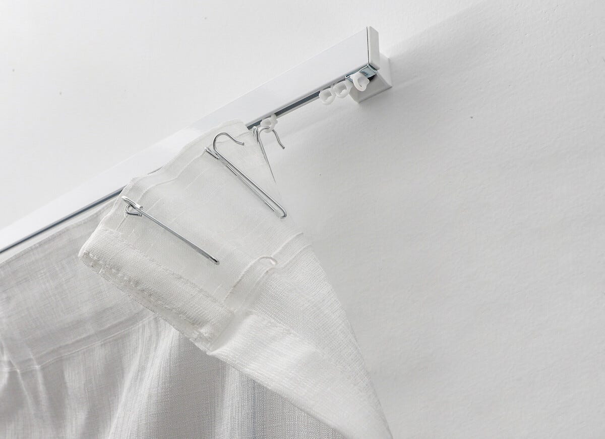 • Gardinkrok som låter gardinen fall rakt och fritt under skenan/gardinstången.